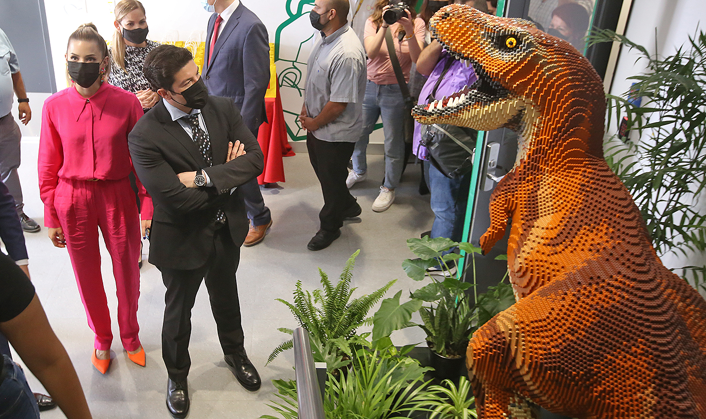 Acompañado de Mariana Rodríguez Cantú, de AMAR a Nuevo León; de Nancy Sánchez, directora de LEGO; de la Secretaria federal de Economía, Tatiana Clouthier; y del Secretario de Economía estatal, Iván Rivas, el Gobernador Samuel Alejandro García Sepúlveda cortó el listón inaugural de la nueva planta.