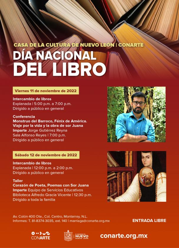 CONARTE a través de la Casa de la Cultura de Nuevo León, celebrará el Día Nacional del Libro 2022, con diferentes actividades literarias y de fomento a la lectura.