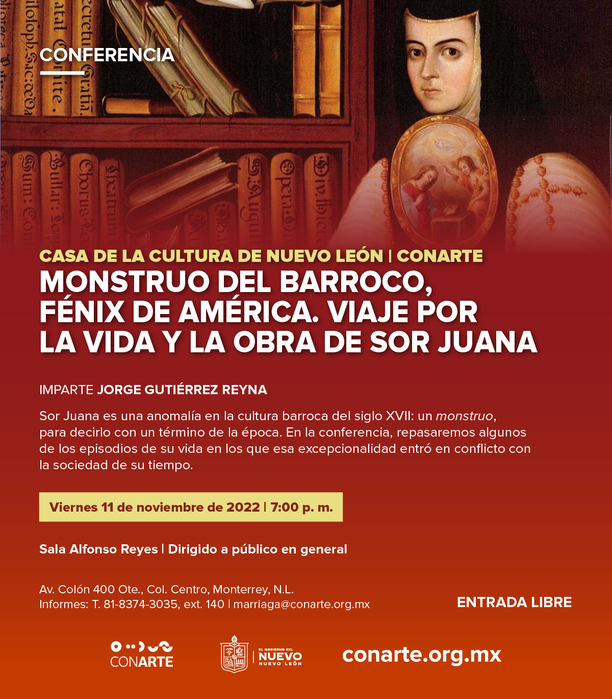 Sor Juana es una anomalía en la cultura barroca del siglo XVII: un monstruo, para decirlo con un término de la época. En la conferencia repasaremos algunos de los episodios de su vida en los que esa excepcionalidad entró en conflicto con la sociedad de su tiempo, y conoceremos a sus principales detractores y aliados en dichos conflictos. Si Sor Juana fue un monstruo, éste más precisamente sería un Fénix: una autora dotada de una pluma única, vasta y fecunda. Llevaremos a cabo la lectura de algunos de los mejores poemas de sor Juana, los cuales la convirtieron en la poeta más leída de su tiempo y en la última gran escritora (el broche de oro) de los Siglos de Oro españoles.
