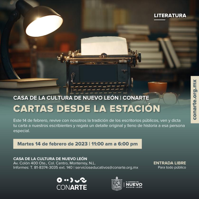 Monterrey, Nuevo León.- La tradición de los escritorios públicos, que en el pasado eran indispensables y popularmente conocidos por las cartas de amor que escribían, es una tradición que forma parte de nuestra herencia cultural intangible y que se revive para resaltar el valor de este oficio y retomar el contacto humano, este próximo Día del Amor y la Amistad en la Casa de la Cultura de Nuevo León | CONARTE, con el proyecto “Cartas desde la Estación”.