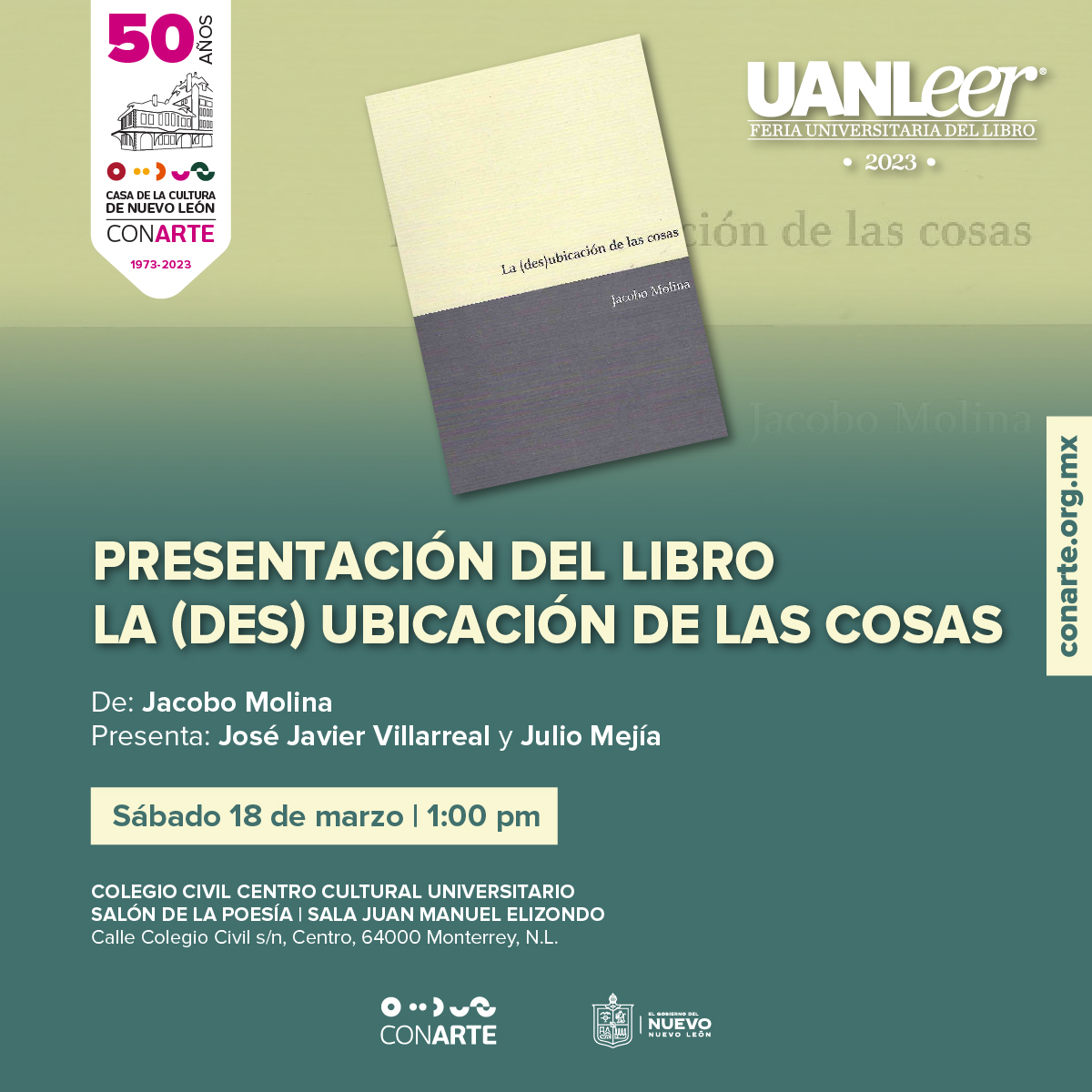 Con más de 100 títulos y 15 novedades editoriales, CONARTE tendrá presencia en la Feria Universitaria del Libro UANLeer 2023, a celebrarse del 15 al 19 de marzo en el Colegio Civil Centro Cultural Universitario de la UANL.