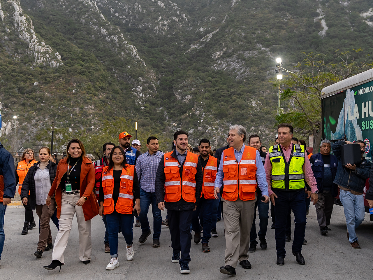 Monterrey, Nuevo León.- El Gobernador de Nuevo León, Samuel Alejandro García Sepúlveda, en compañía del Director General de Servicios de Agua y Drenaje de Monterrey, Juan Ignacio Barragán, encabezaron la conclusión de los trabajos de conexión de la tubería definitiva en la zona de la Huasteca.