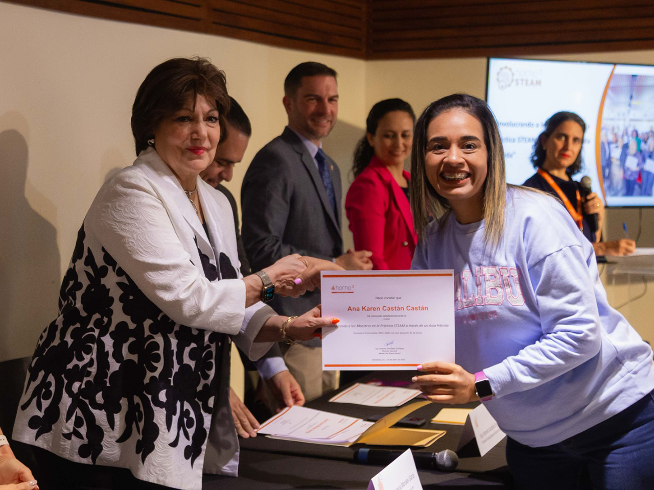 Monterrey, Nuevo León.- El Gobierno del Estado a través de la Secretaría de Educación, entregó diplomas a docentes de Educación Básica que concluyeron con éxito el curso STEM en el que fortalecieron su comprensión sobre la investigación en internet y el uso de herramientas tecnológicas en sus clases.