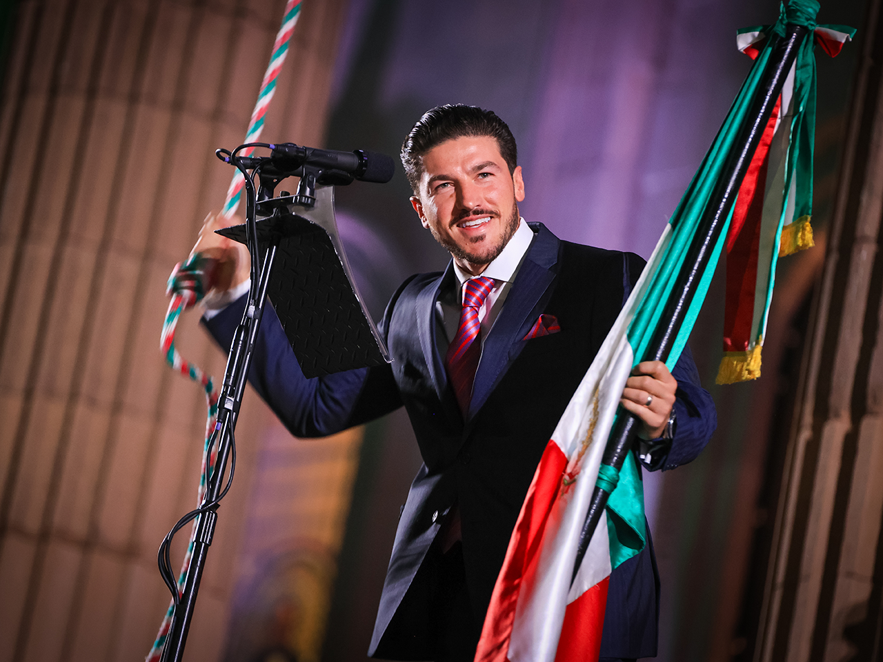 El Mandatario estatal, acompañado de Mariana Rodríguez Cantú,  sus hijas Mariel e Isabel y su Gabinete de Gobierno, realizó el acto protocolario, recibiendo la bandera y posteriormente dirigiéndose a las escalinatas de Palacio de Gobierno posteriormente tocó la campana y encabezó el Grito de Independencia destacando la grandeza de Nuevo León como el primer lugar en todo y honrando a los héroes que nos dieron la patria.