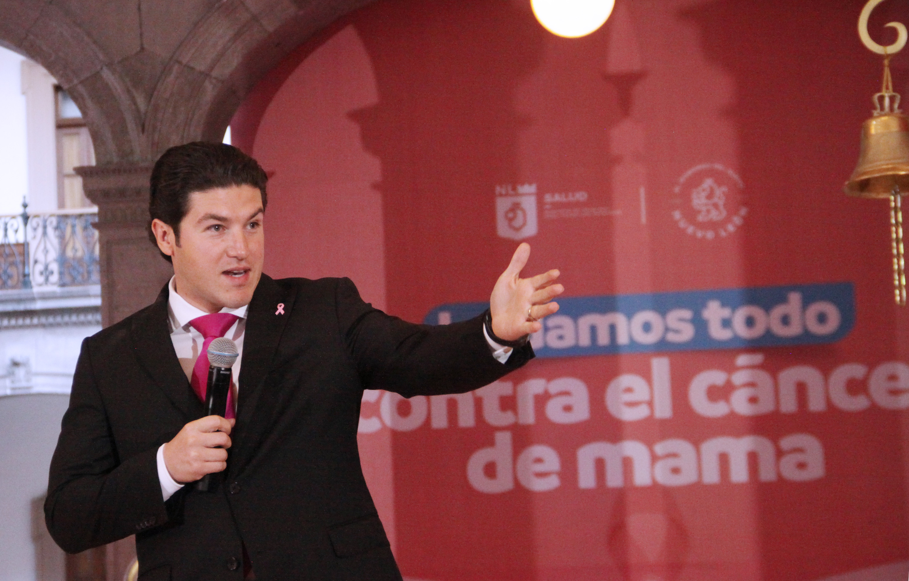 El Gobernador de Nuevo León, quien también encabezó la ceremonia de iluminación rosa del Palacio de Gobierno, destacó que la entidad ya tiene una cobertura universal gratuita.