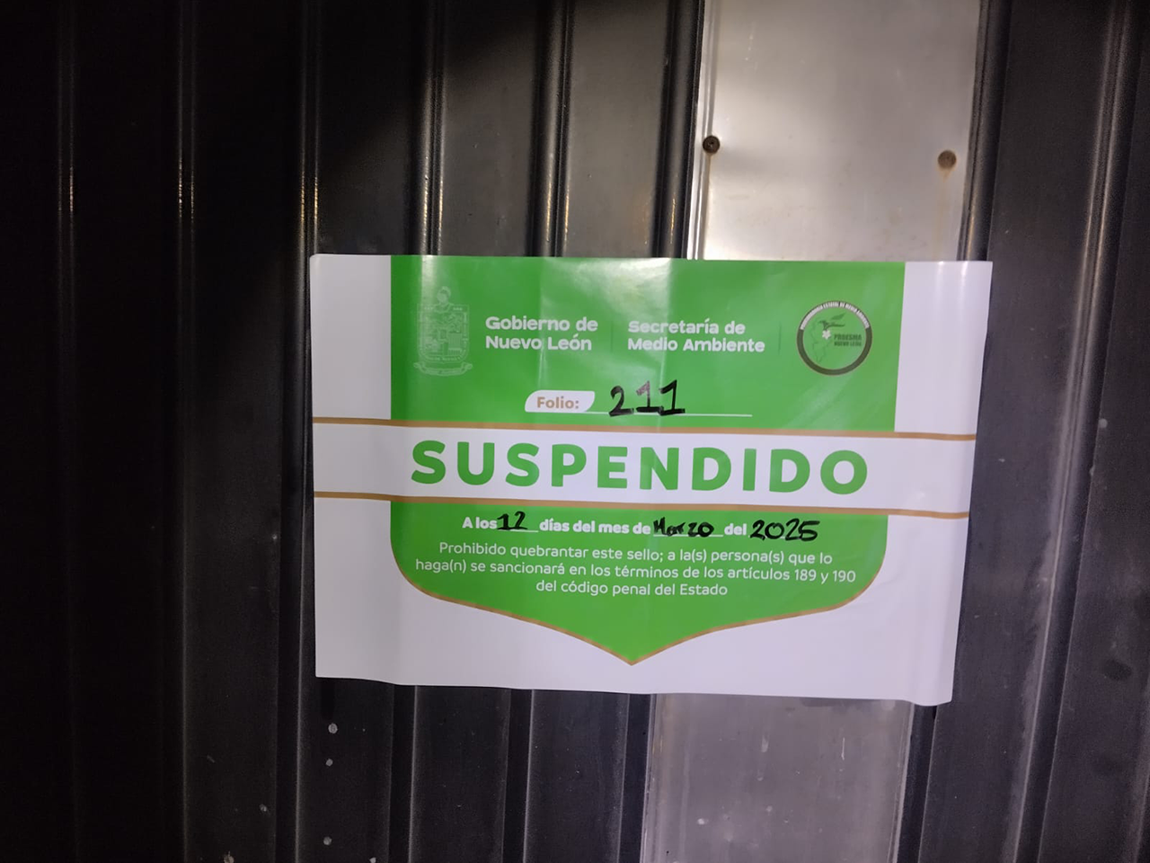 - La Secretaría de Medio Ambiente suspendió las actividades de una empresa en el municipio de Pesquería y una obra en construcción en Santa Catarina.