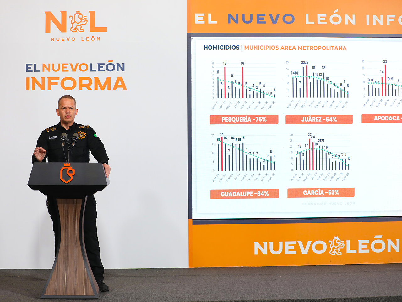 De igual forma se dio a conocer que permanecen a la baja los homicidios al reportarse 66 por ciento menos que el mismo periodo del año pasado, siendo los municipios de pesquería, Juárez, Apodaca, Guadalupe y García los que muestran la mayor reducción en la zona metropolitana; y en el Valle de las Salinas y región citrícola destacan Zuazua, Ciénega de Flores, Salinas Victoria, Galeana y Montemorelos.