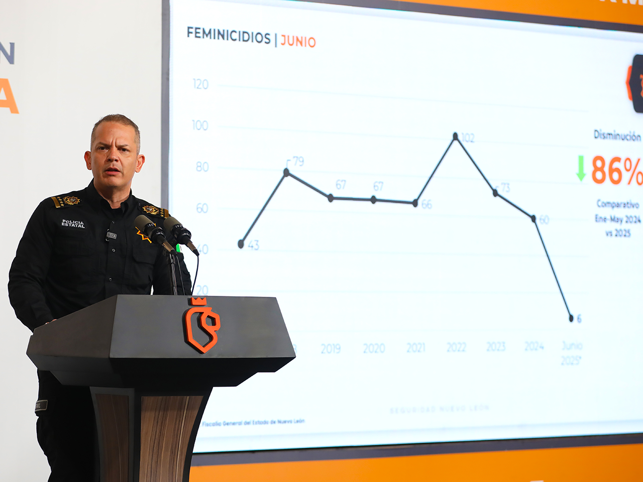 También se registró una disminución del 86 por ciento en el delito de feminicidio, con seis casos documentados por la Fiscalía General del Estado en lo que va del año.