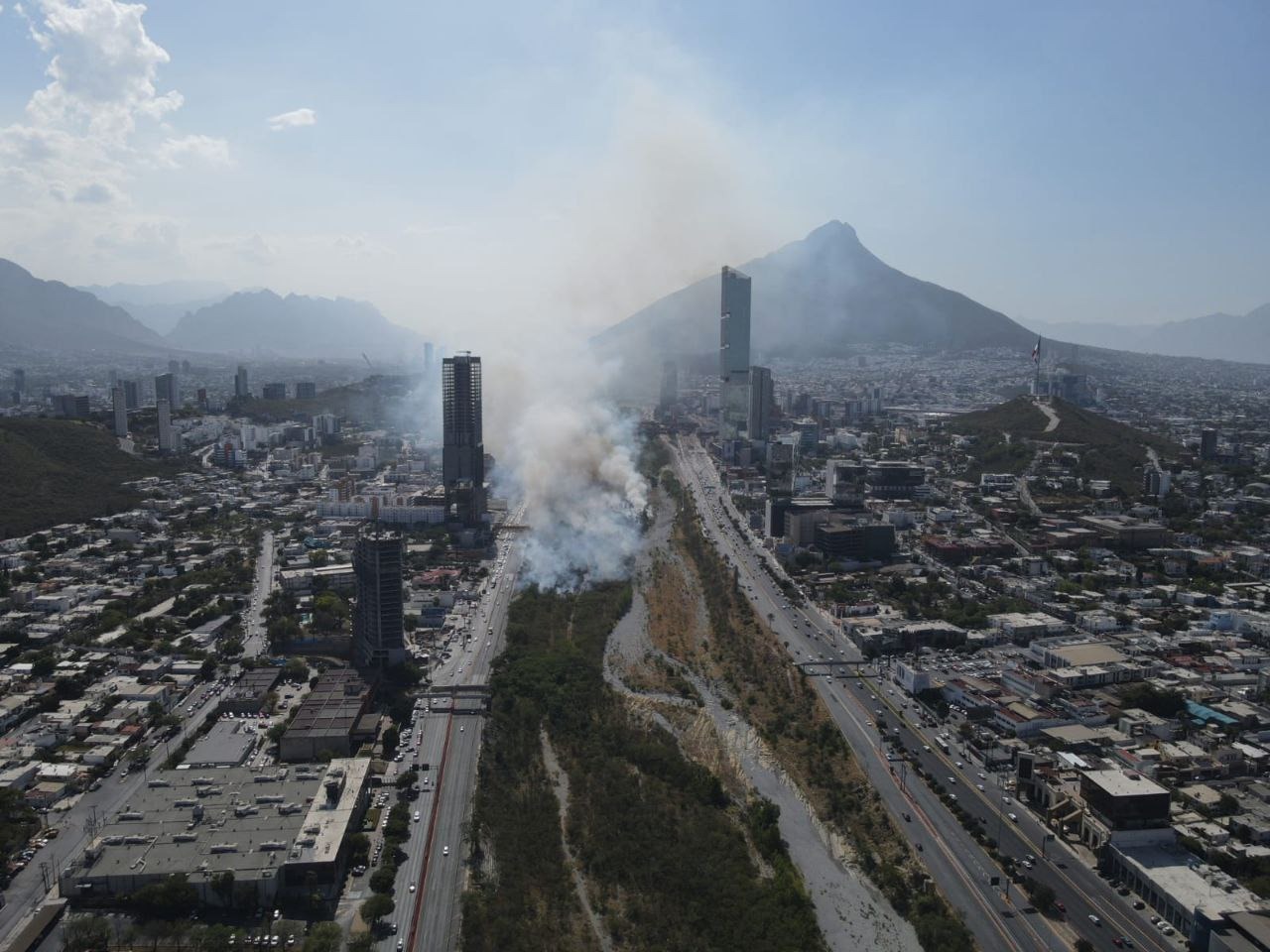 Monterrey, Nuevo León.- Protección Civil Nuevo León informa que se encuentra controlado el incendio que se registró esta tarde sobre el lecho del Rio Santa Catarina a la altura de Venustiano Carranza, en Monterrey.
