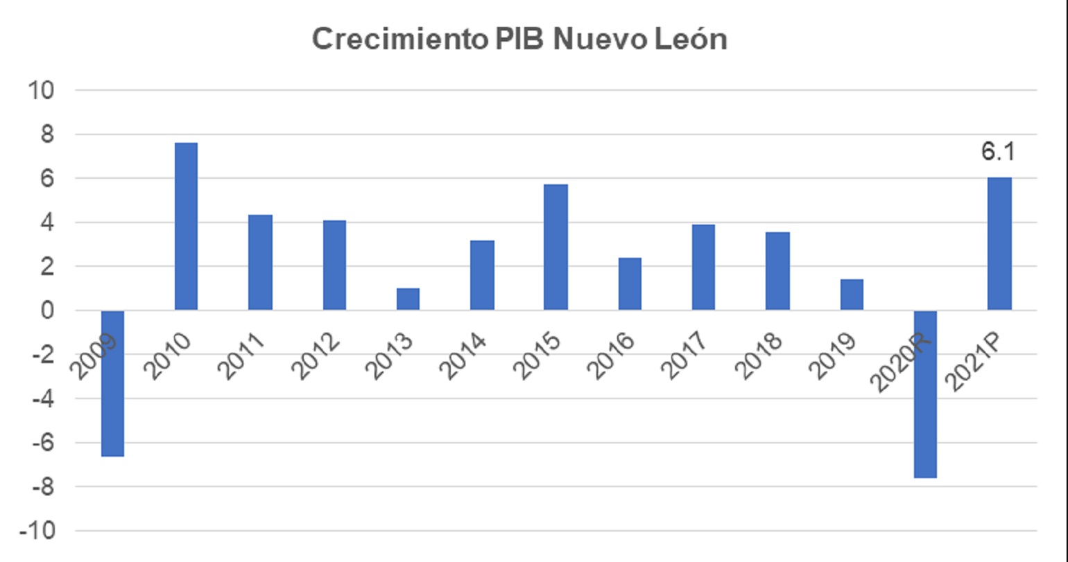 De acuerdo con datos preliminares del crecimiento del PIB de las entidades federativas del INEGI, Nuevo León creció 6.1%, la tasa más alta desde 2011.