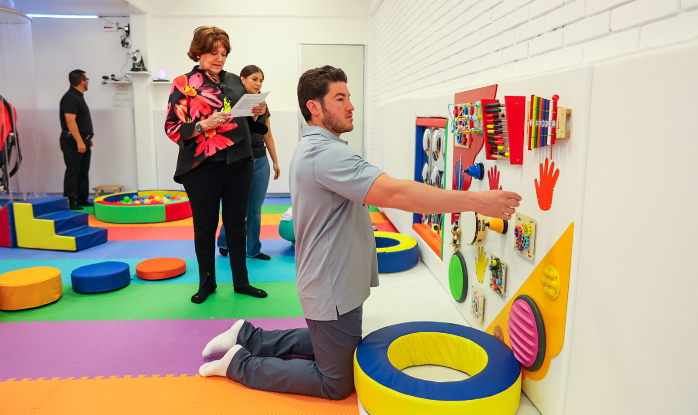 Durante el recorrido se informó que se proyecta instalar 5 aulas multisensoriales más durante el 2024, en cada uno de los siguientes CAM: Monterrey Sureste, Solidaridad 90, Raúl Rangel Frías, San Bernabé y el CAM Gilberto Rincón Gallardo.
