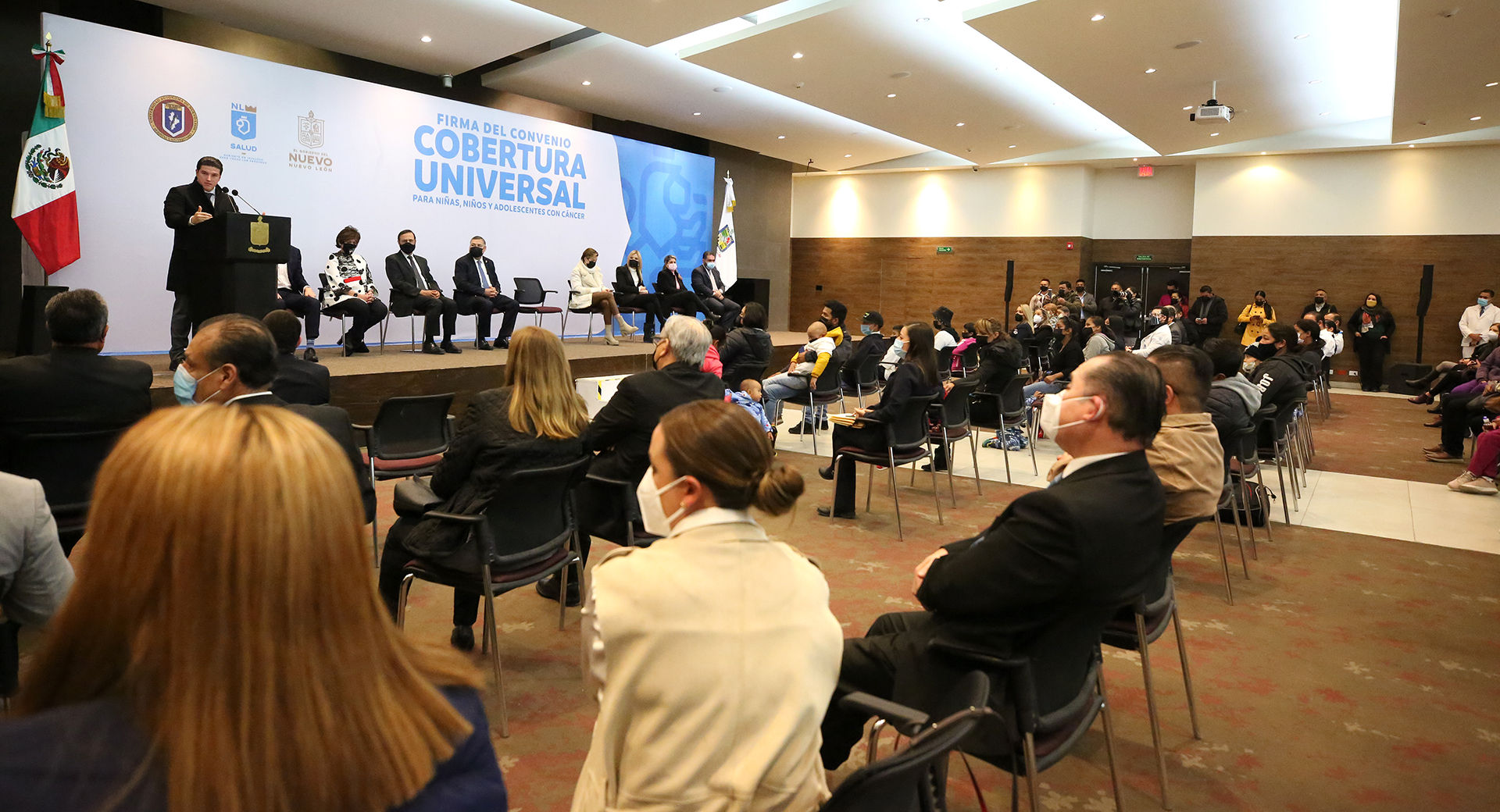El Gobernador Samuel Alejandro García Sepúlveda formalizó hoy con el Hospital Universitario el convenio para la cobertura universal de las niñas, niños y adolescentes con cáncer en el estado de Nuevo León, a través de un fideicomiso inicial de 230 millones de pesos.