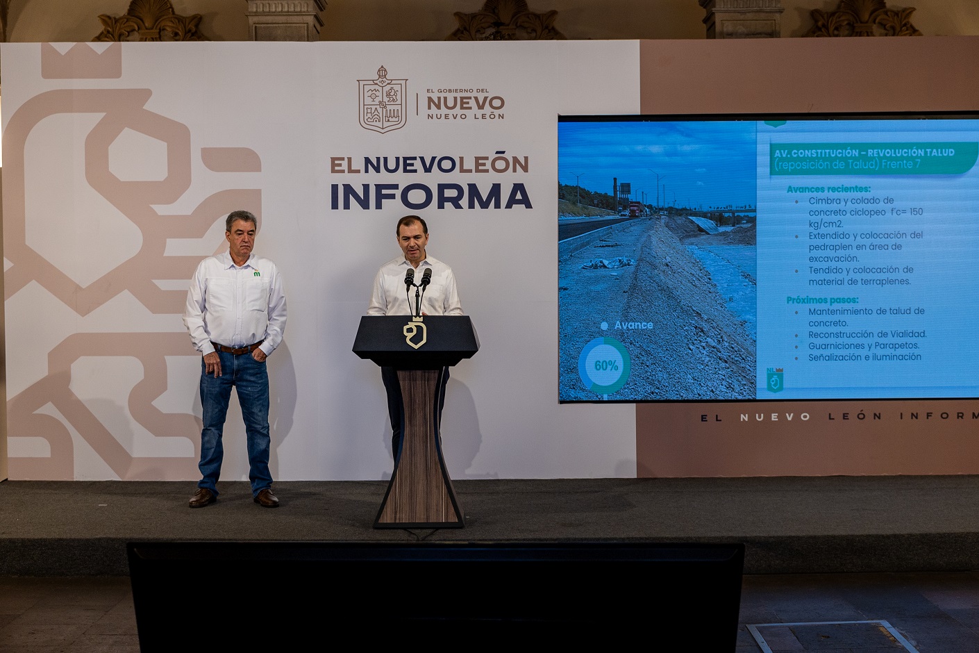 En el Nuevo León Informa el Secretario de Movilidad y Planeación Urbana, Hernán Villarreal dijo que al margen de la reapertura de los carriles, los trabajos en este par vial continuarán en otros frentes, en especial la construcción de taludes, pero sin afectar la movilidad de las y los neoloneses.