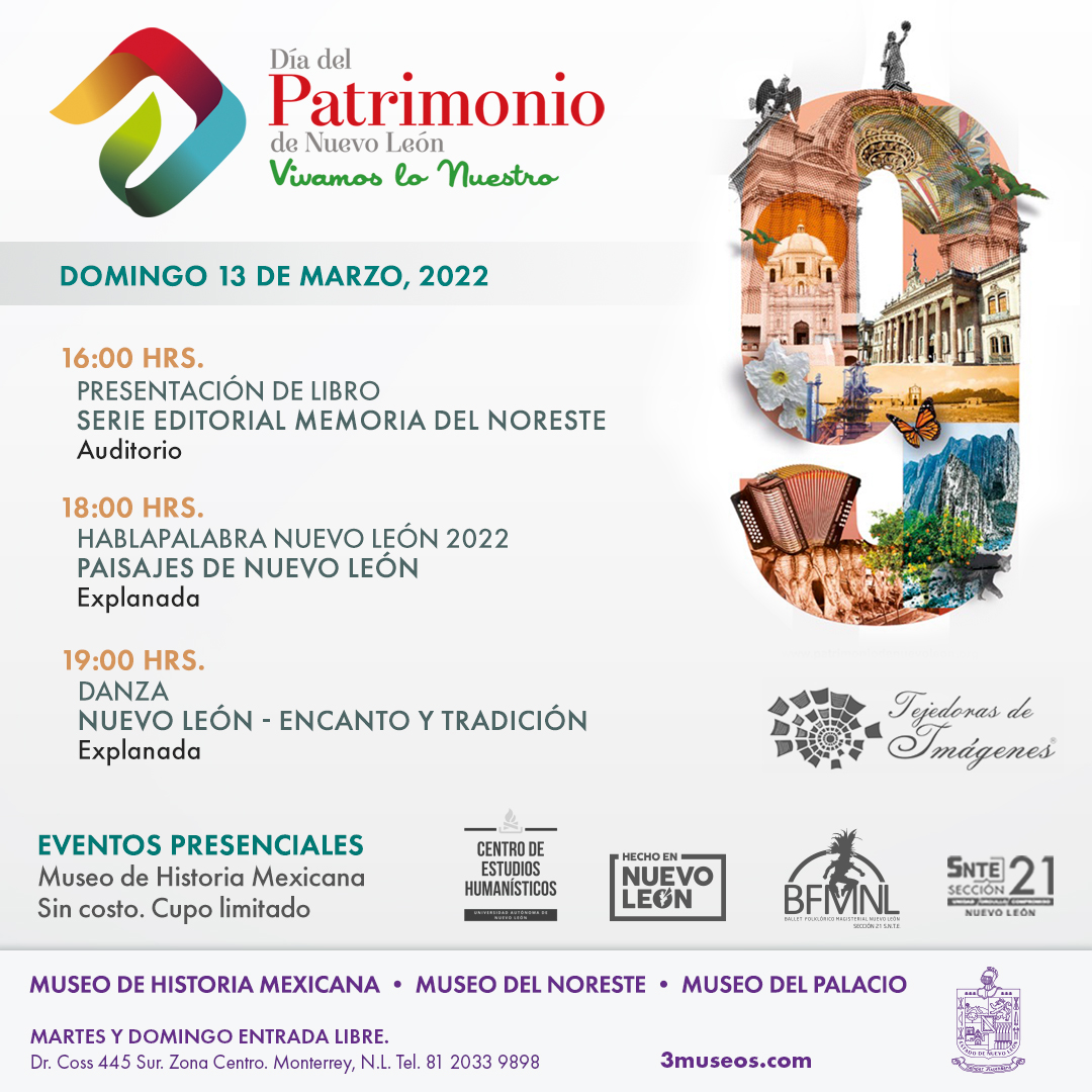 La riqueza cultural, histórica, gastronómica y artesanal de los nuevoleoneses estará presente en el Museo de Historia Mexicana y su explanada para celebrar el Día del Patrimonio de Nuevo León, el domingo13 de marzo, a partir de las 12:00 horas.