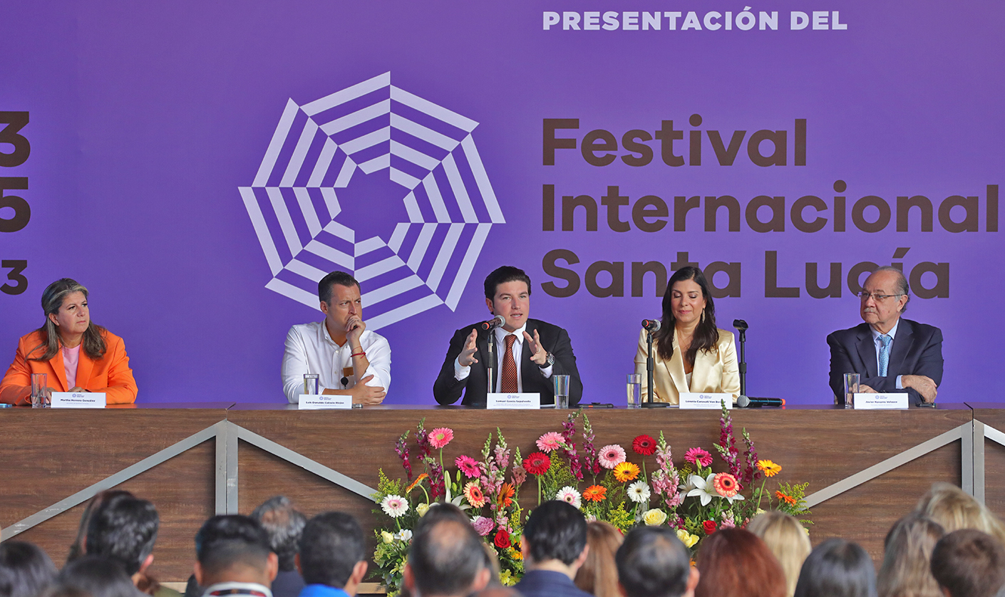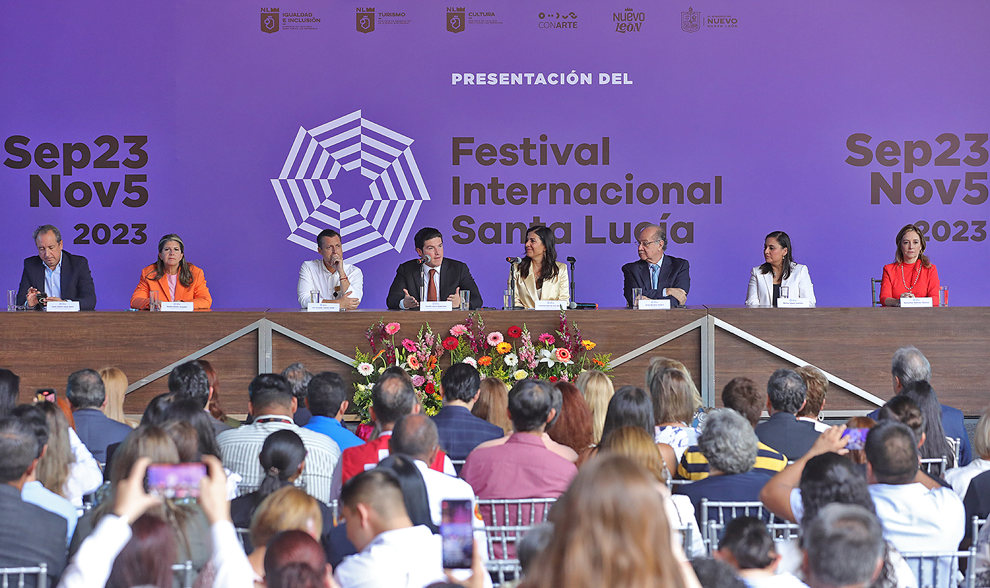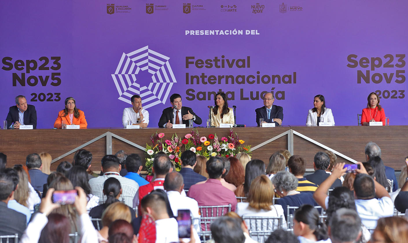 Monterrey, Nuevo León.- En lo que será el preludio del 200 aniversario del Estado y porque en el Gobierno del nuevo Nuevo León la cultura, el arte y la música es para todas y todos los neoloneses, el Gobernador Samuel Alejandro García Sepúlveda encabezó la presentación de la agenda cultural del Festival internacional Santa Lucía 2023, en su decimosexta edición del 23 de septiembre al 5 de noviembre.