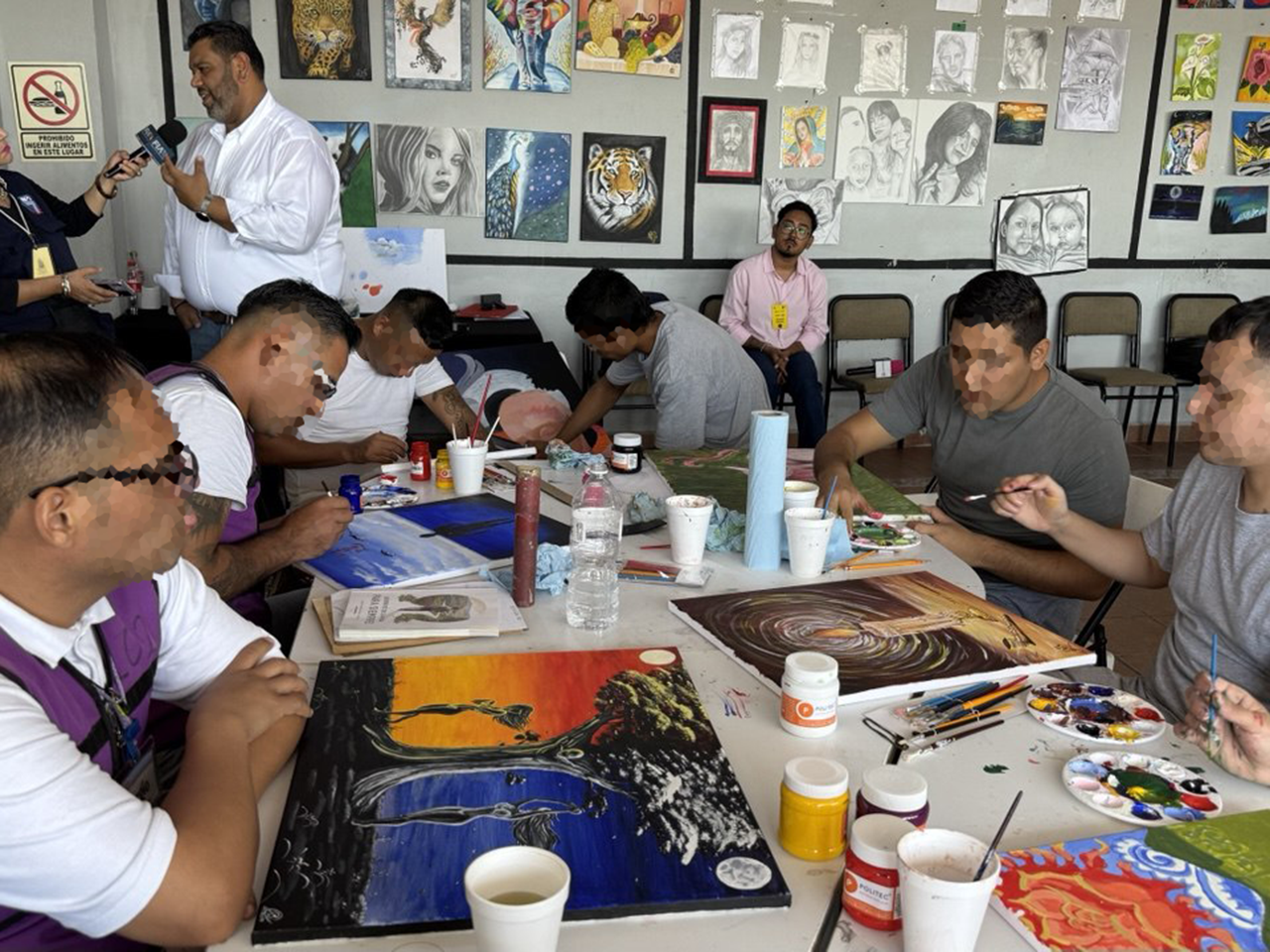 La Secretaría de Seguridad, a través de la Agencia de Administración Penitenciaria, organizó un Taller de Pintura en el Centro de Reinserción Social Número 1 Norte, el cual fue impartido por el Maestro en Artes Plásticas, Mauricio Castillo, en colaboración con Grijalva Consultores.