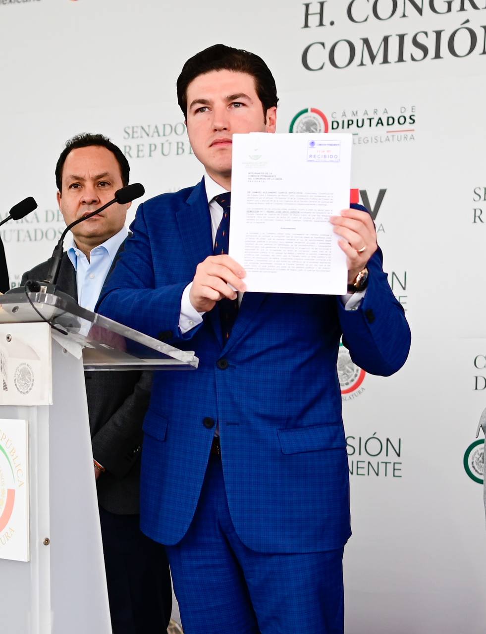 Acompañado de los coordinadores de las bancadas parlamentarias de MC en el Senado y Congreso federal, así como de representantes de este instituto político, el Gobernador Samuel García dijo que además solicitó a la Cámara de Diputados, como lo marca la Constitución Federal Artículo 110, juicio político e inmediata separación del cargo de Arce Jardón.