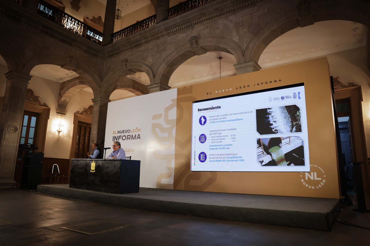 En la rueda de prensa El Nuevo León Informa, el Director General de AyD, Juan Ignacio Barragán, señaló que, en todo el estado se tiene una cobertura de tratamiento de 94% y en el área metropolitana de 100%; existen 40 plantas tratadoras de agua residual y 17 lagunas de oxidación.