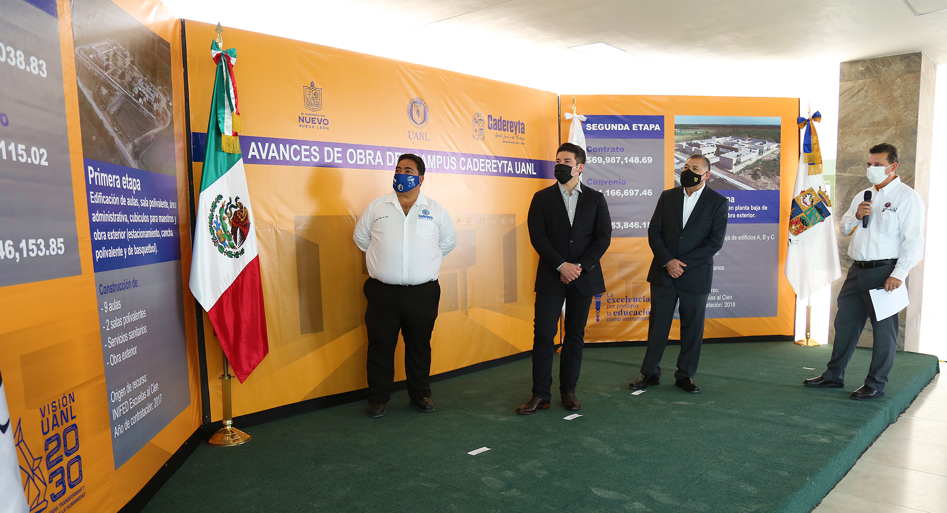 La explicación de los proyectos fue hecha por el director de Construcción y Mantenimiento de la UANL, Pedro Leobardo Valdez Tamez. Asistió al evento el alcalde de Cadereyta, Cosme Julián Leal Cantú.