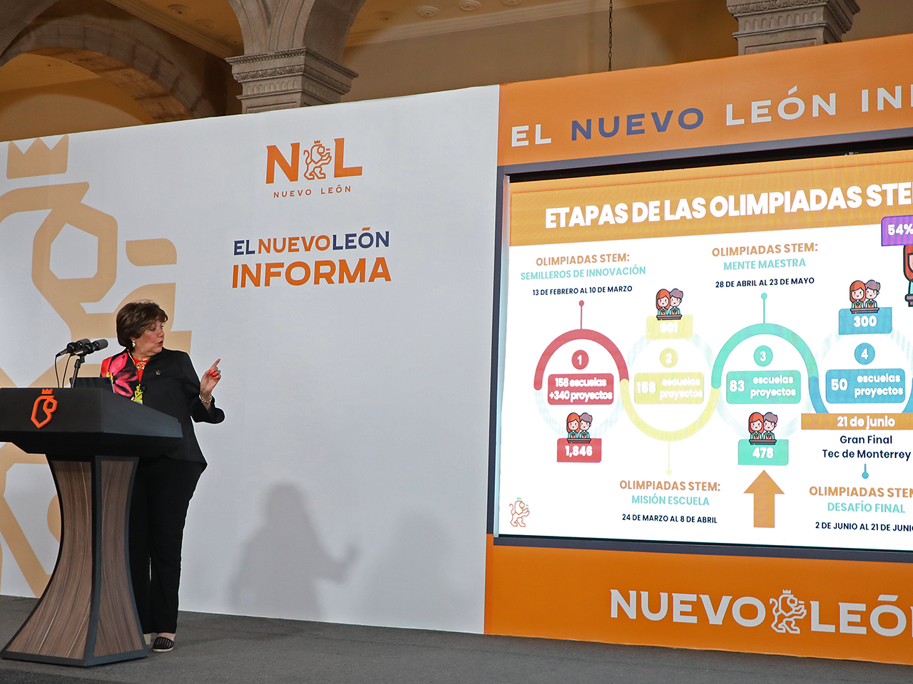 “Como ustedes podrán ver todos los niños y las niñas de sexto de primaria y de tercero de secundaria presentan la prueba Nuevo León Aprende. Con los datos que tenemos aquí pueden ver que en todos los ciclos escolares vamos avanzando considerablemente en Lenguaje y Comunicación, Matemáticas y Ciencias”, refirió.