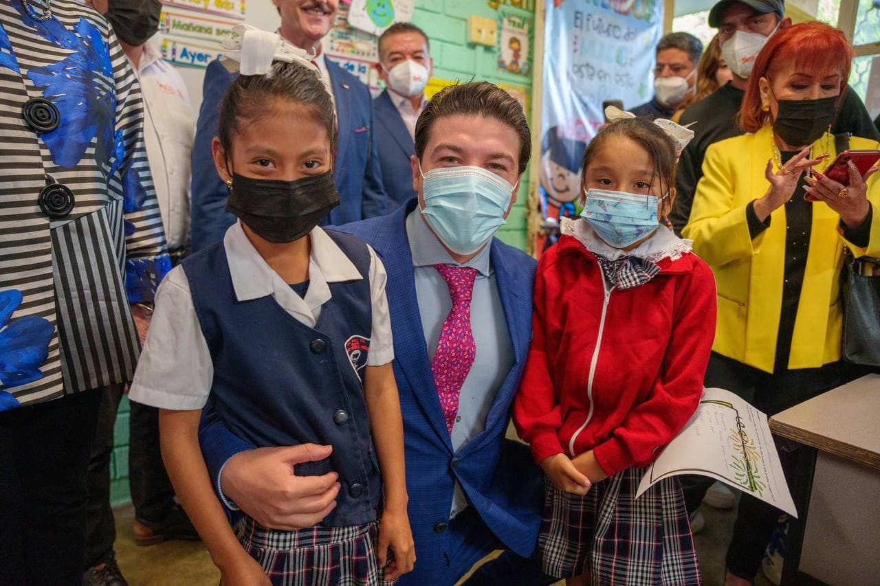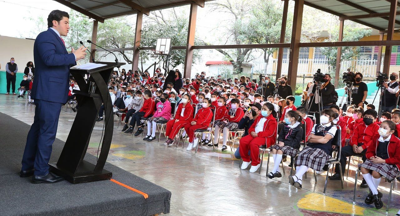 Tras encabezar la ceremonia de reinicio del Ciclo Escolar 2022- 2023 en la primaria Profesor J. Merced Garza Hinojosa, en la que estuvo acompañado por la Secretaria de Educación, Sofialeticia Morales, el Mandatario también señaló que el presupuesto es histórico y de beneficio para las y los estudiantes.
