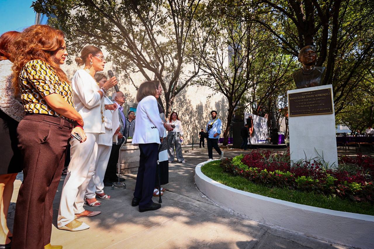 Monterrey, Nuevo León.- Con el fin de evocar la vida, obra y legado de la reconocida activista y defensora de los derechos de las mujeres María Elena Chapa, el Instituto Estatal de las Mujeres de Nuevo León, en colaboración con la RED Paridad Nuevo León, develaron hoy un busto en la plazoleta del Pasillo del Empoderamiento.