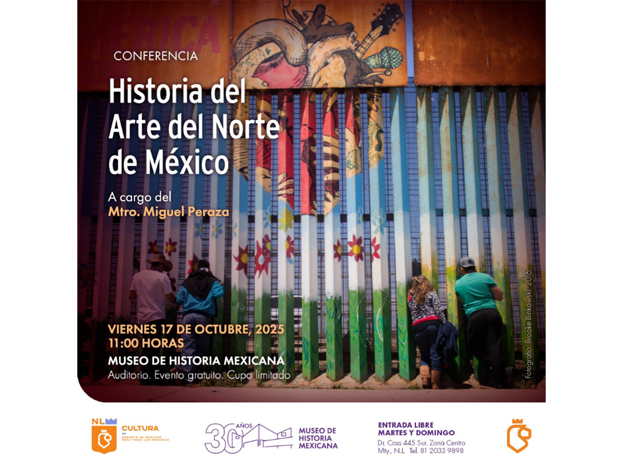 La conferencia “Las obras escultóricas emblemáticas en el Norte del País”, con Miguel Peraza, será el viernes 17 de octubre a las 11:00 horas, en el Auditorio del Museo de Historia Mexicana, la entrada el libre y el cupo limitado. Más información en www.3museos.com