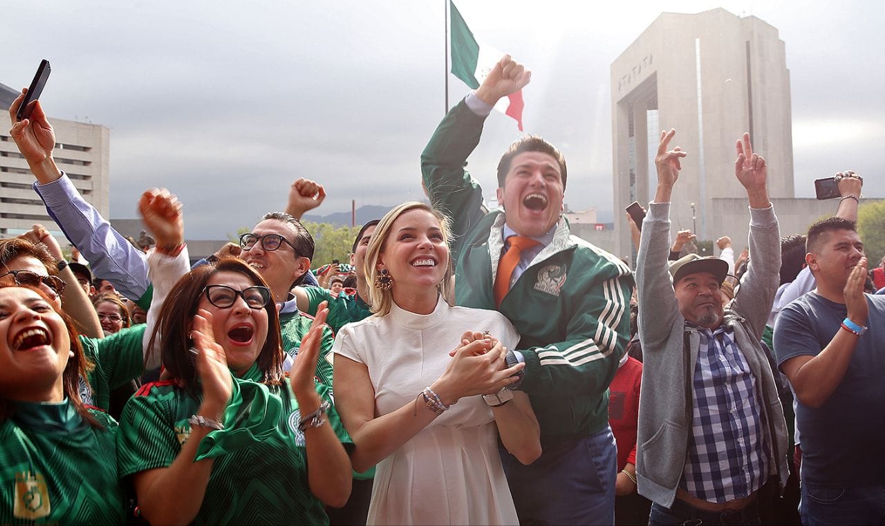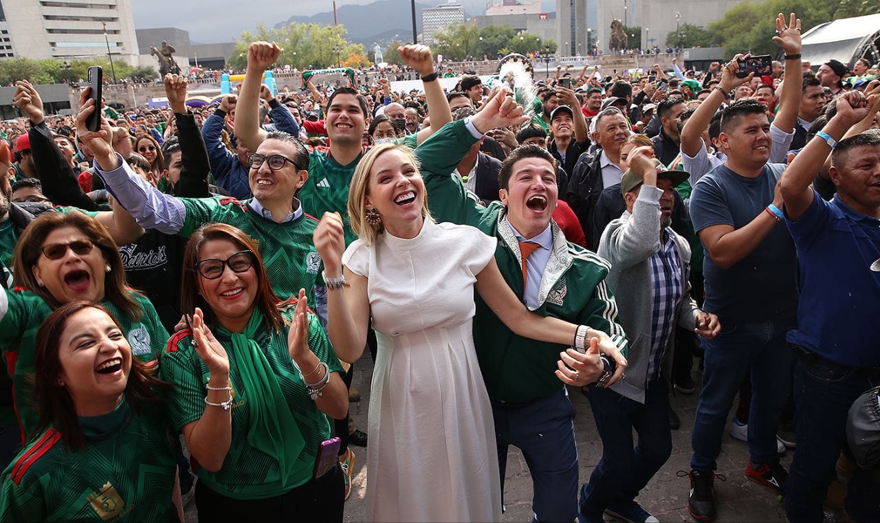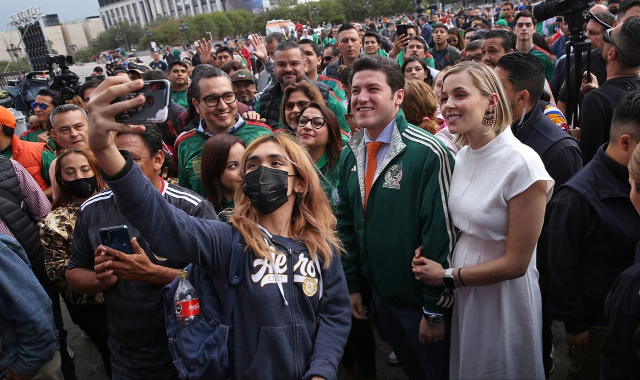 Acompañados por cientos de aficionados, el Gobernador Samuel García Sepúlveda y Mariana Rodríguez Cantú, de Amar a Nuevo León, presenciaron esta tarde la transmisión del partido de la Selección Mexicana y la Selección de Arabia Saudita en la Explanada de los Héroes.