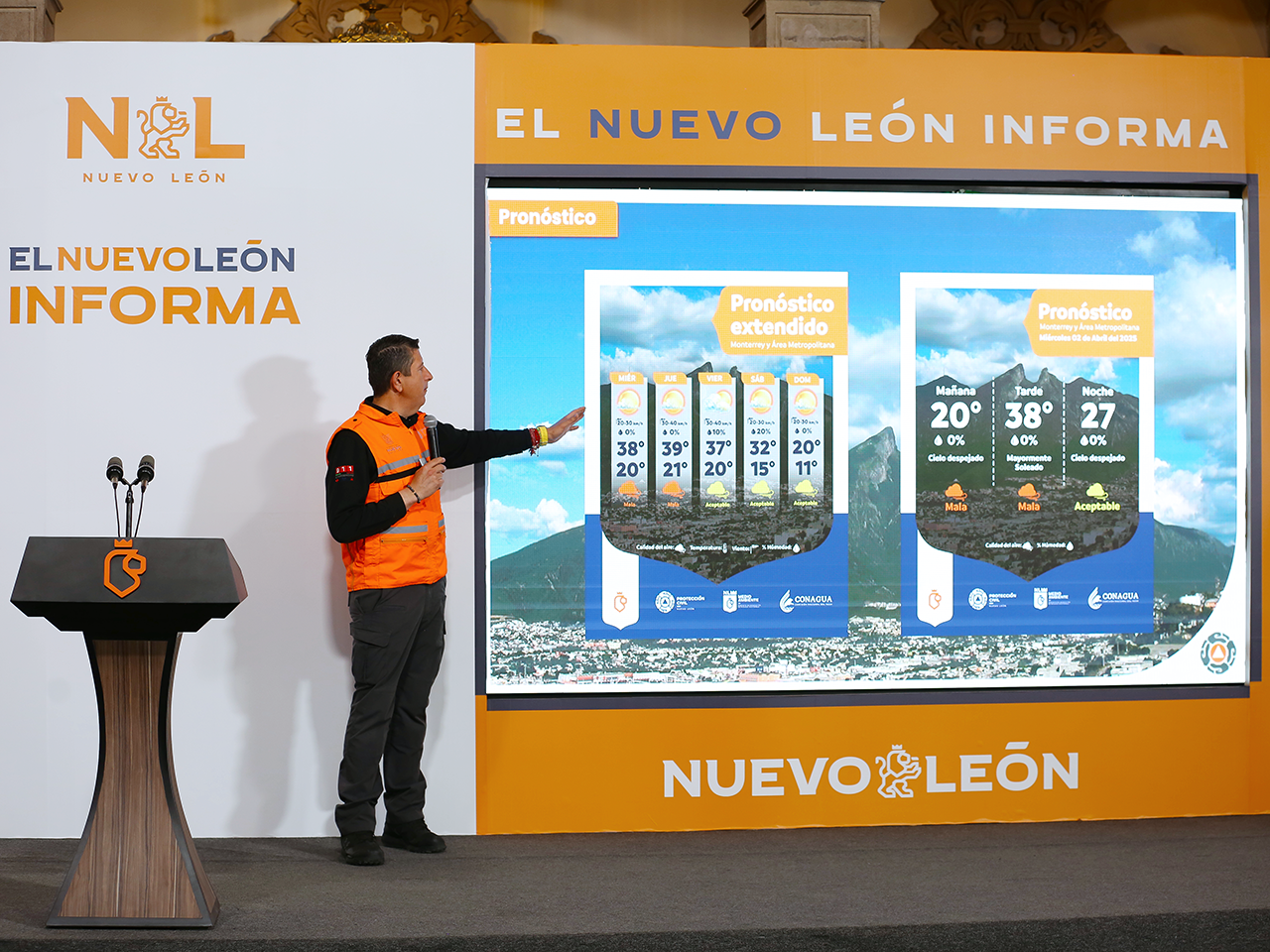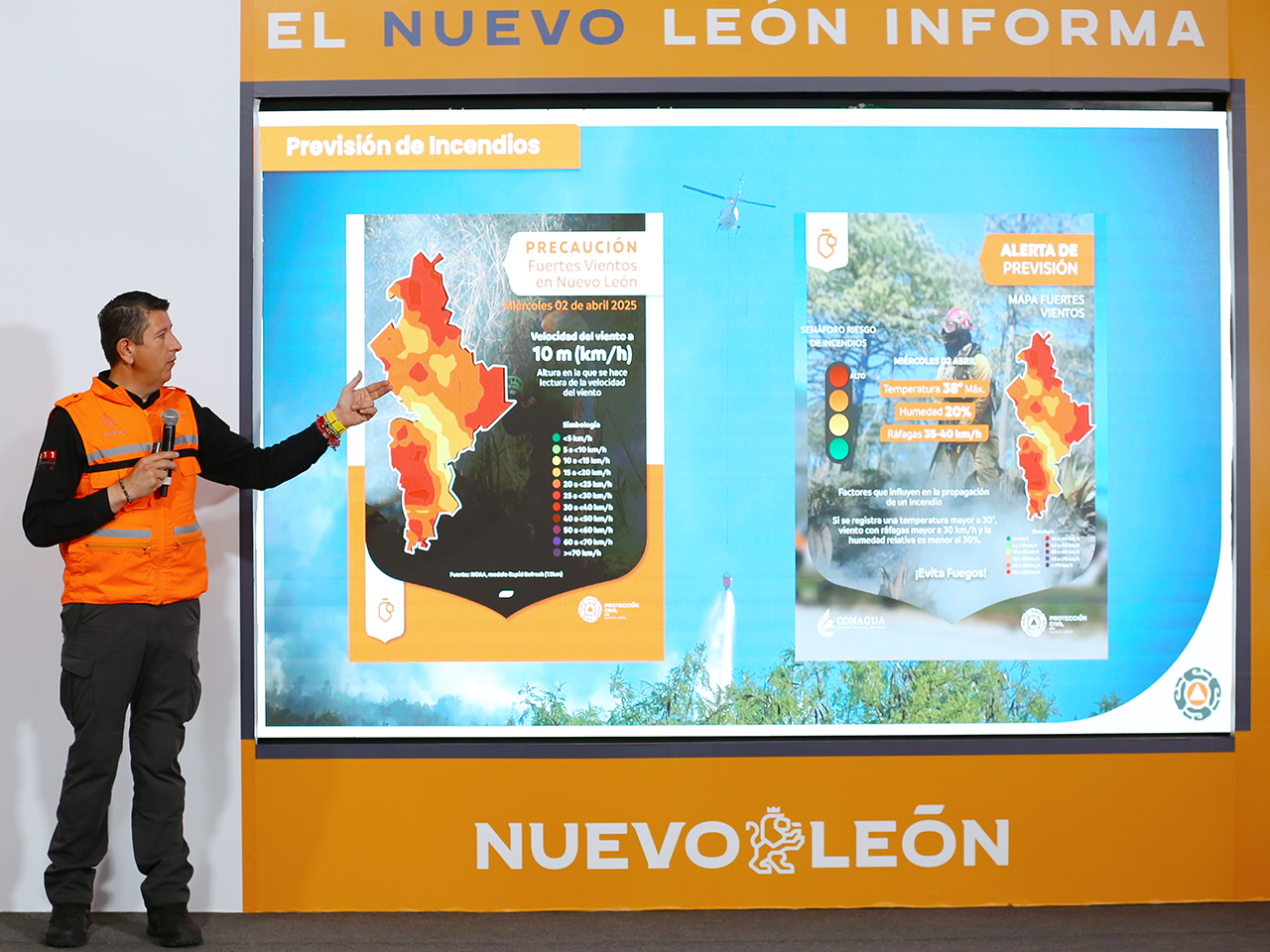 Durante rueda de prensa Nuevo León Informa, el director de Protección Civil, Erik Cavazos Cavazos, dio a conocer que posterior a los días calurosos se espera la llegada de un frente frío lo que provocará que se presenten fuertes vientos, polvos, baja humedad, que podrán afectar la calidad del aire y aumentar los incendios.