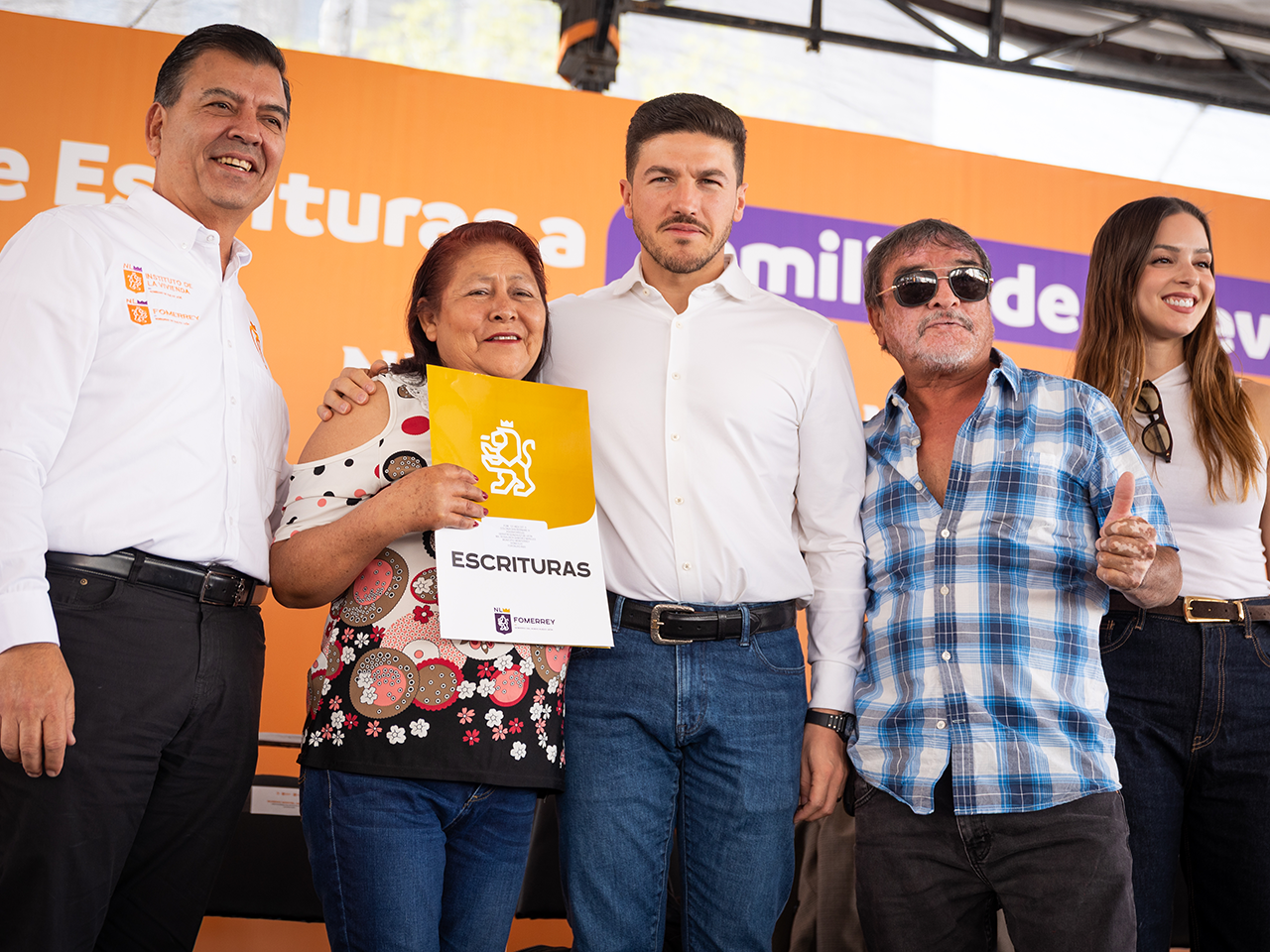 "Hoy esa angustia se acaba porque vamos a ayudar a 345 familias de Monterrey, de Santa Catarina, de Apodaca y de San Nicolás para que reciban las escrituras de su vivienda. Y esa es la seguridad de que su patrimonio va a estar protegido. Ahora van a tener la tranquilidad de un techo seguro de que nadie puede poner en duda lo que han construido y que seguirá siendo un hogar para sus hijas, para sus hijos y para sus nietos", apuntó Rodríguez Cantú.
