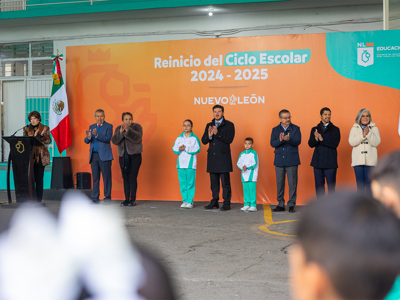 Monterrey, Nuevo León.- Porque en el Gobierno del nuevo Nuevo León primero es la educación, el Gobernador del Estado, Samuel Alejandro García Sepúlveda encabezó la ceremonia cívica de Honores a la Bandera en la Escuela Primaria “Presidente Abelardo L. Rodríguez”.