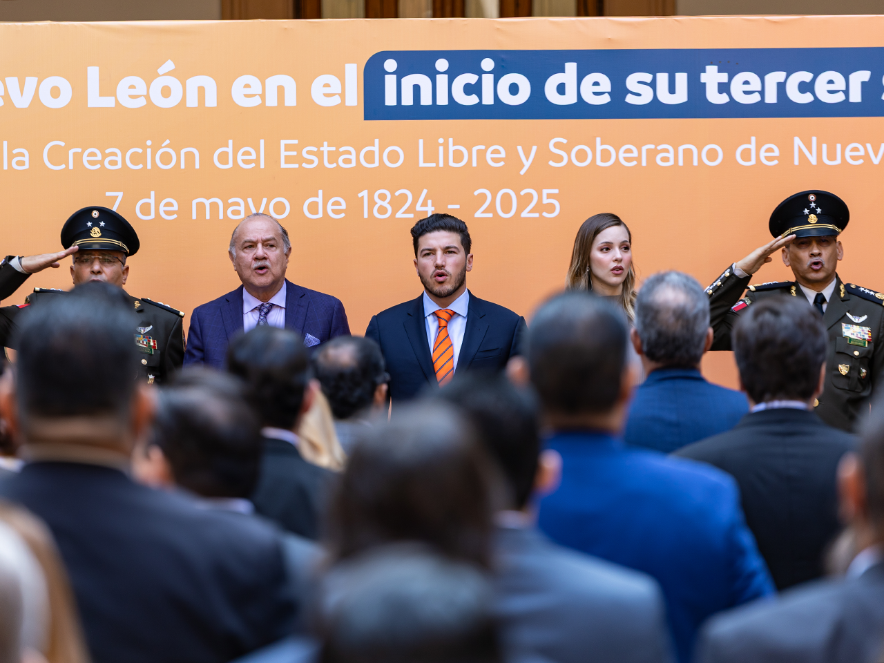 Monterrey, Nuevo León.- En el festejo por el aniversario de los 201 años de Nuevo León como Estado Libre y Soberano, el Gobernador Samuel Alejandro García Sepúlveda dijo que ante el liderazgo nacional y siendo el motor económico del país, en nuestra entidad se escribe el futuro de México.