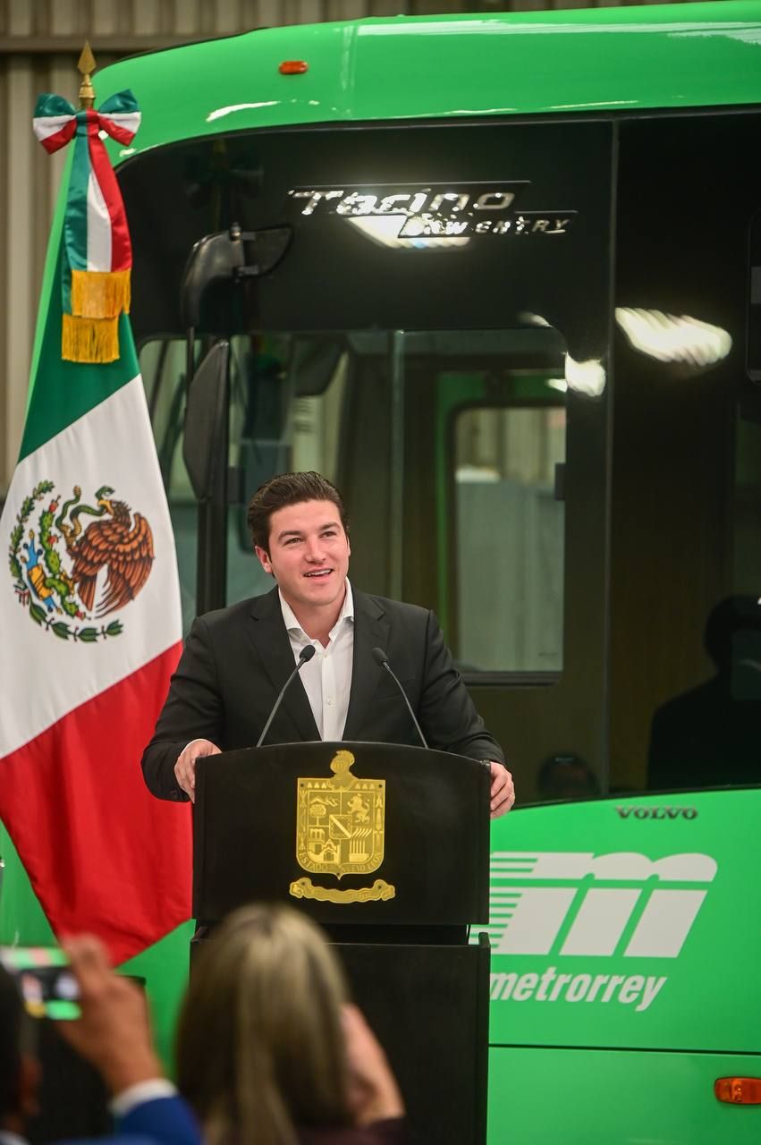 El Gobernador Samuel Alejandro García Sepúlveda encabezó la entrega de la primera de las 37 unidades Euro 6 de TransMetro, que darán servicio como rutas alimentadoras en el municipio de Escobedo.