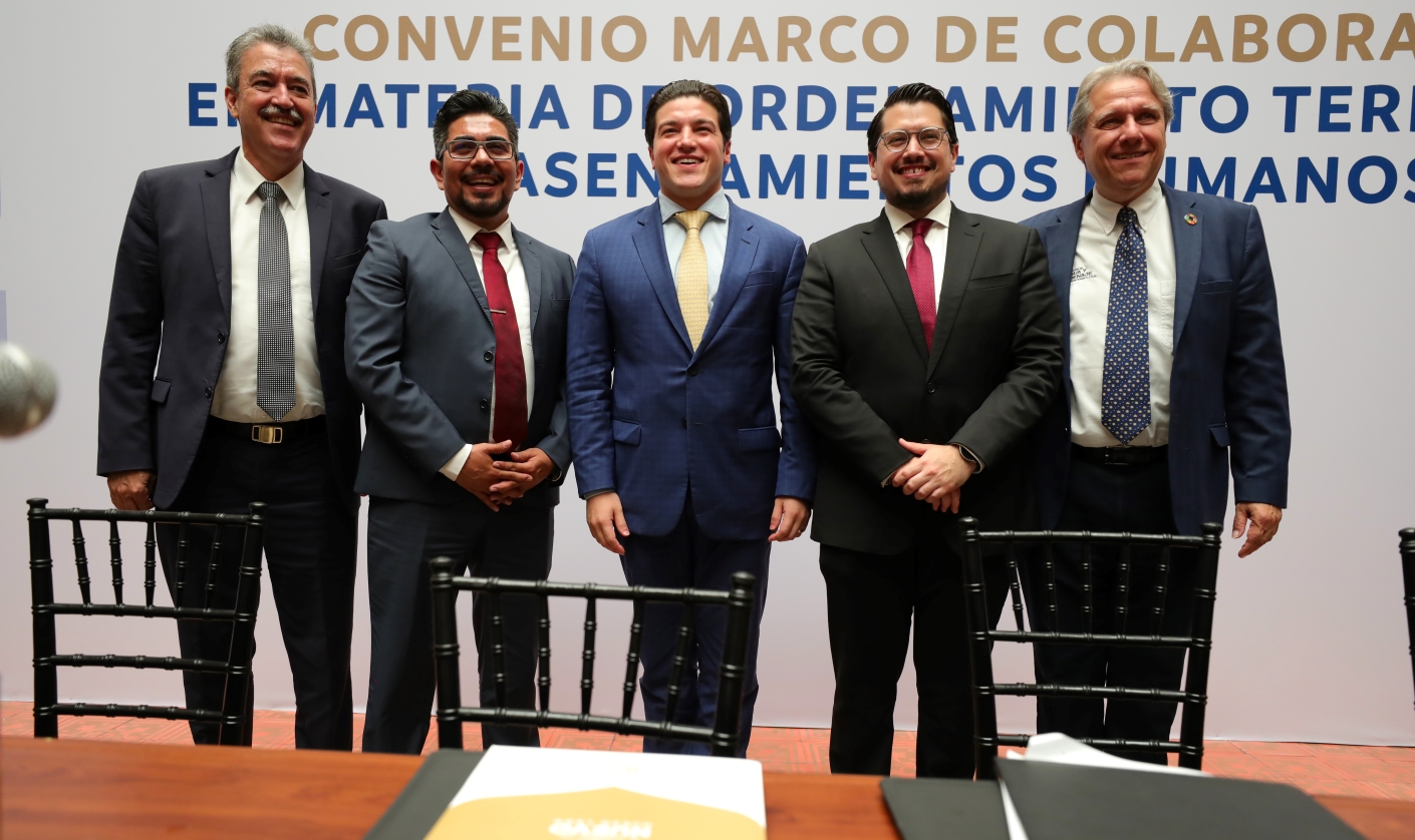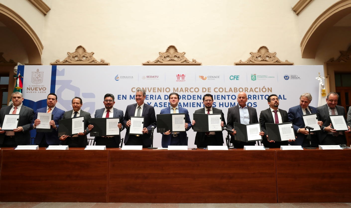Para lograr que Nuevo León cuente en el futuro inmediato con un ordenamiento territorial en beneficio de la población, el Gobierno del Estado firmó hoy un convenio marco de colaboración con instancias federales.