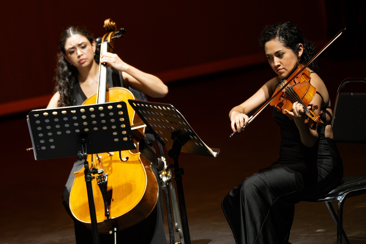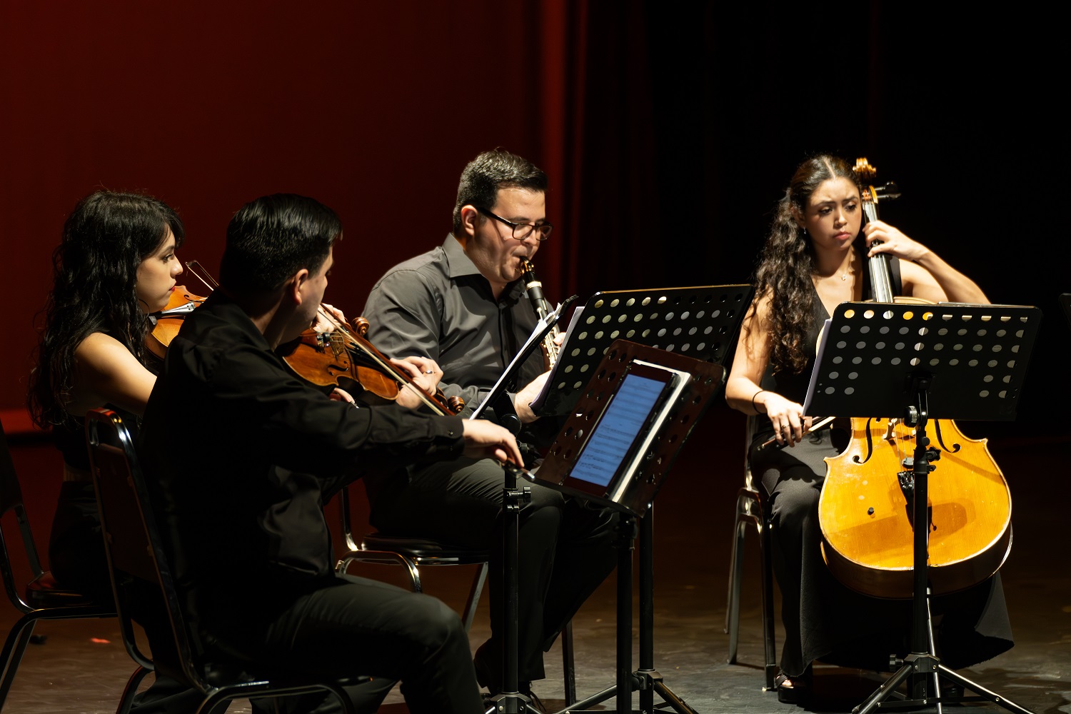 Monterrey, Nuevo León.- El variado programa de la Temporada de Música 2024 tuvo ayer un arranque mágico y sorprendente con el clarinete, violines, viola y cello en el programa “Entre luz y sombras”, en el Teatro del Centro de las Artes.