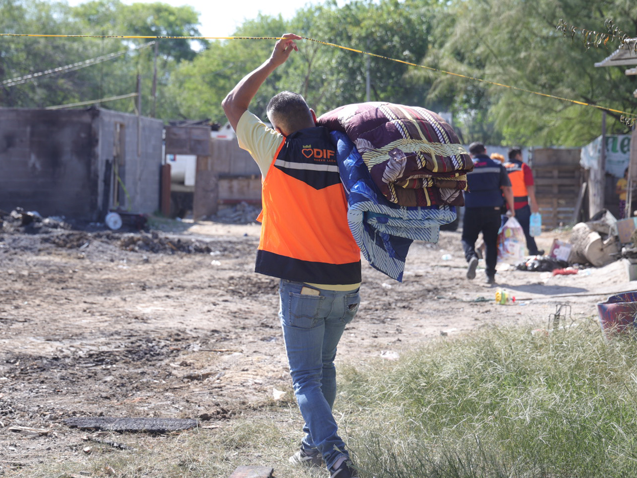 Una vez realizadas las labores para sofocar el incendio, desde temprana hora del día viernes, personal de la Subdirección de Gestoría Social de DIF Nuevo León, estuvo entregando despensas, colchonetas, tamales, cepillos de dientes, y otros artículos de limpieza, así como medicamentos, a su vez levantó un registro para revisar las necesidades más apremiantes de los habitantes de este sector.