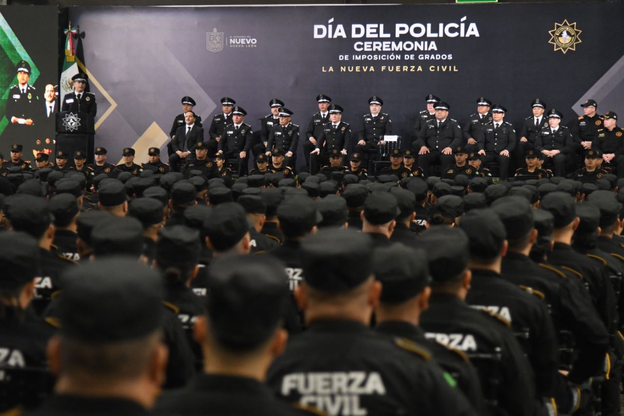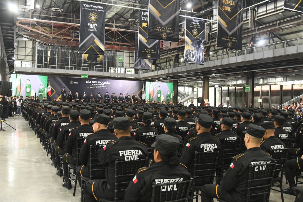 Monterrey, Nuevo León.- En el marco del Día del Policía y en honor a su deber de Proteger y Servir a Nuevo León, el titular de Fuerza Civil, Gerardo Escamilla Vargas entregó ascensos a más de 500 elementos de esta institución policial.