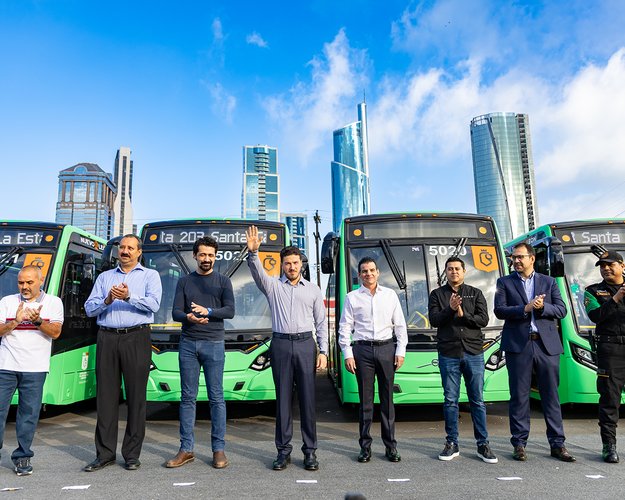 “A partir de hoy empiezan a llegar otros  mil 800 para llegar al monto de 4 mil camiones. Vamos a tener puros camiones nuevos, verdes, tecnológicos, bajos en emisiones, bonitos, eléctricos, seguros. Y esto junto con las nuevas líneas del Metro tiene que mejorar la movilidad de Nuevo León, la movilidad que siempre debimos tener”.