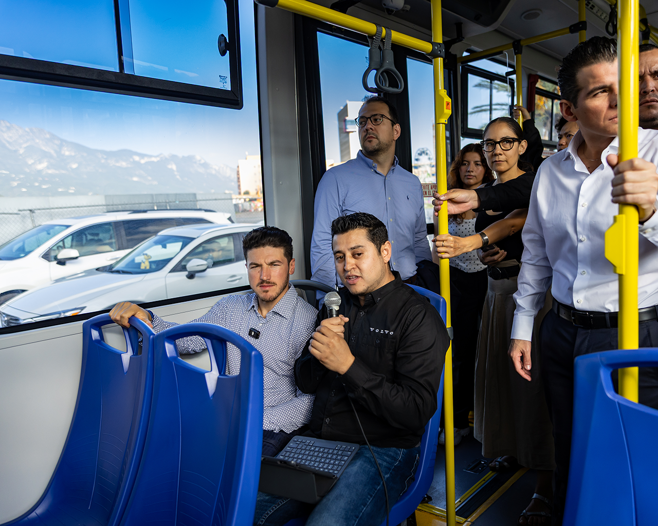 El director de Volvo México, Francisco Loera explicó que se trata de unidades con capacidad para 100 pasajeros; el más robusto que hay en el mercado para moverse, desplazarse, liberar pendientes sin ningún problema; cuenta con frenos de disco en las cuatro ruedas con sistema de seguridad antiderrape, antivuelco.