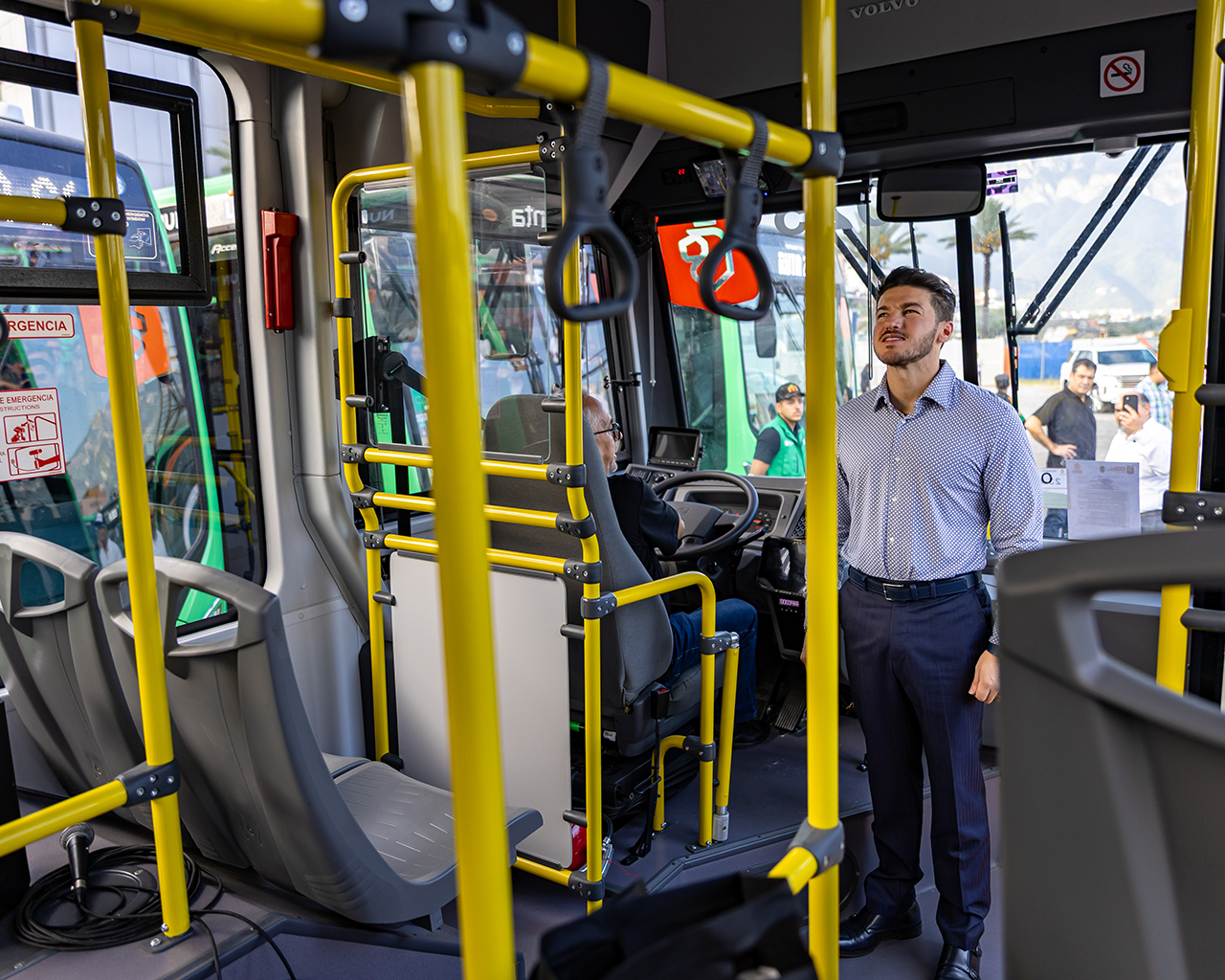 • “A partir de hoy empiezan a llegar otros mil 800 para llegar al monto de 4 mil camiones. Vamos a tener puros camiones nuevos, verdes, tecnológicos, bajos en emisiones, bonitos, eléctricos, seguros. Y esto junto con las nuevas líneas del Metro tiene que mejorar la movilidad de Nuevo León, la movilidad que siempre debimos tener”, expresó el Gobernador.