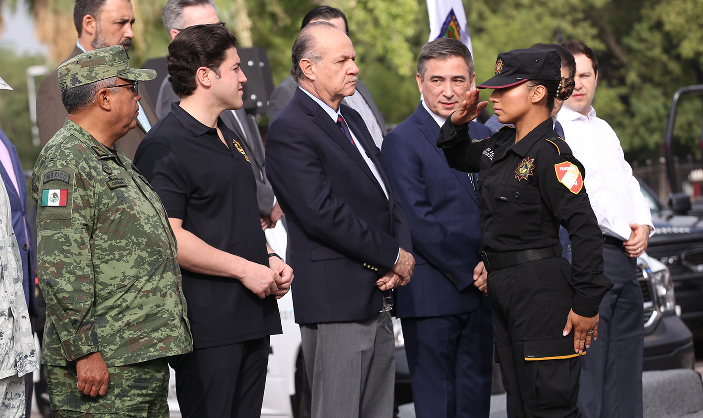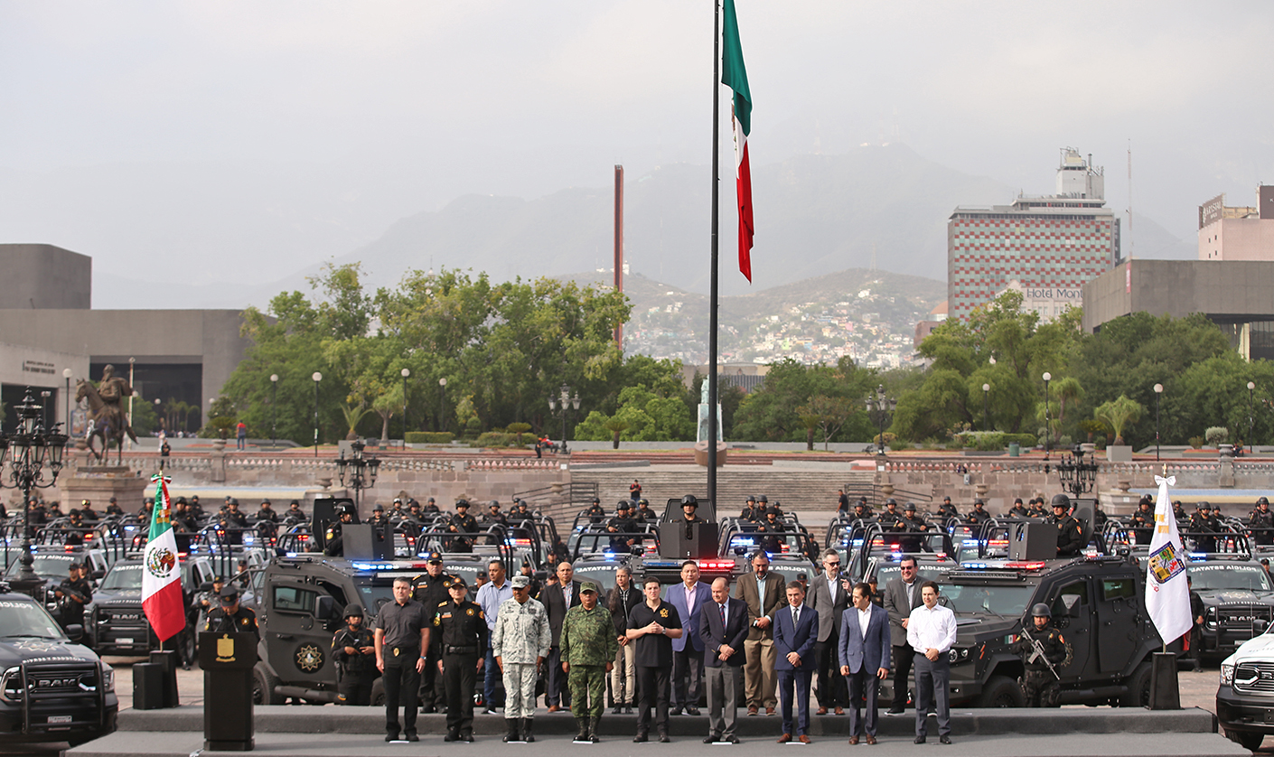 En una acción más del Gobierno del Estado para el relanzamiento de Fuerza Civil, el Gobernador Samuel Alejandro García Sepúlveda entregó este viernes 100 unidades pick up Dodge RAM doble cabina, equipadas como patrullas para realizar un servicio eficiente de supervisión y vigilancia; Un Helicóptero; y 5 Black Mambas, vehículos tácticos blindados "todo terreno" para operaciones policiacas de alto impacto y combate a la delincuencia en el estado.