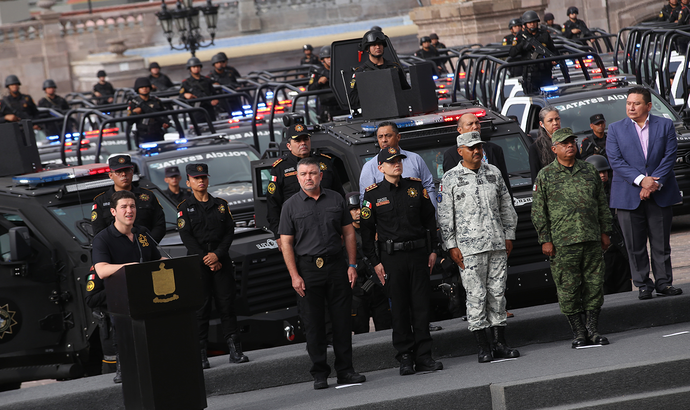 En la Explanada de los Héroes y acompañado del Secretario de Seguridad, Aldo Fasci Zuazua, el Gobernador señaló que partiendo de lo más importante de la corporación, como son sus elementos, se está relanzado la Fuerza Civil.