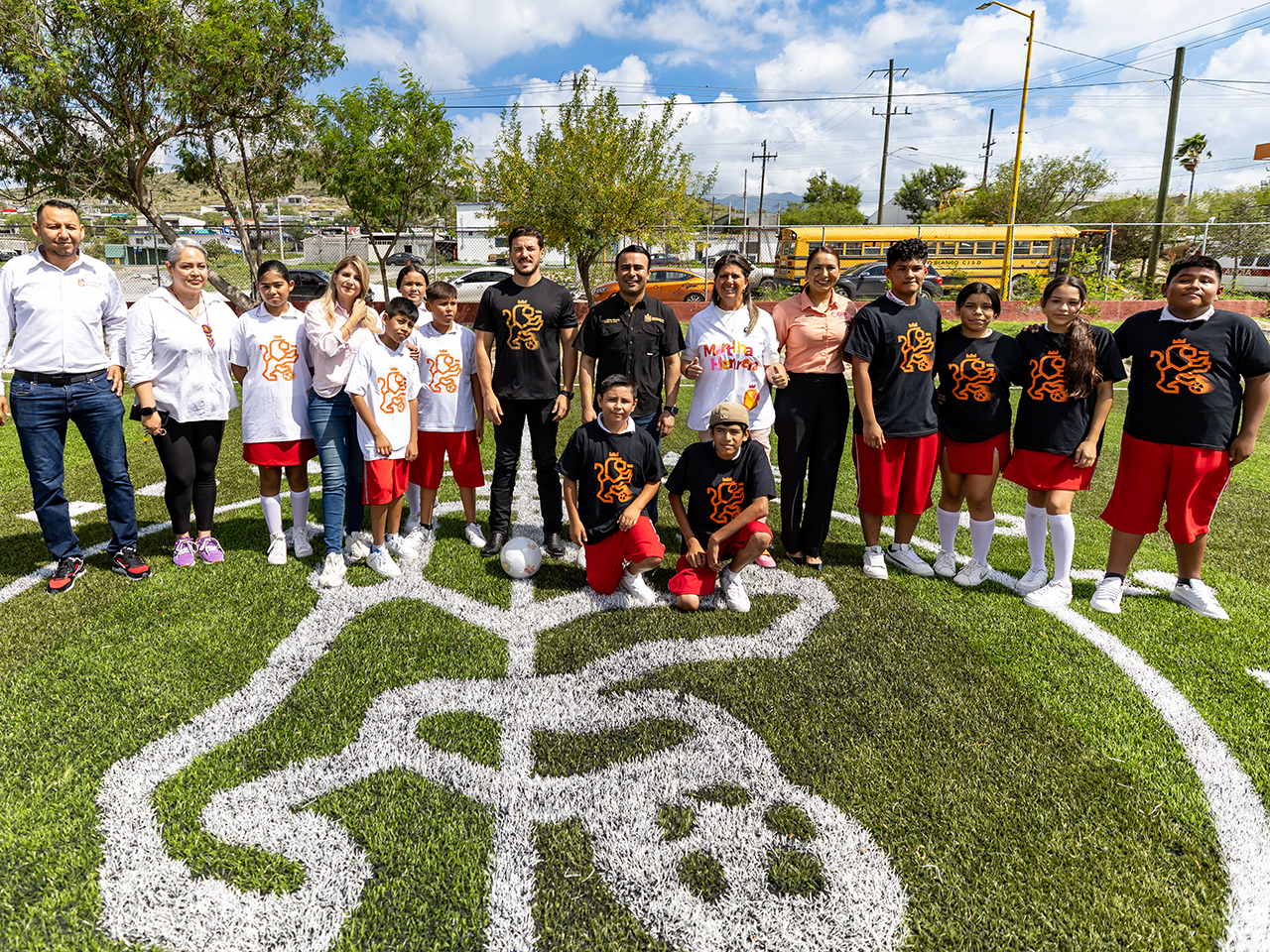 Tras la inauguración del Centro Comunitario, el Gobernador entregó una cancha de futbol 7 en la escuela Secundaria No. 29, Carlos Ledezma, como parte del programa ‘Ponte Nuevo, Ponte Mundial’.