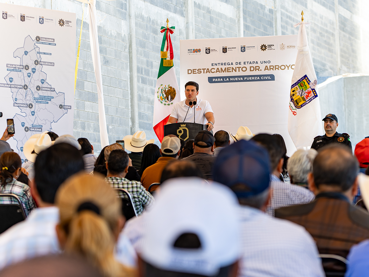 Doctor Arroyo, Nuevo León.- El Gobernador del Estado, Samuel Alejandro García Sepúlveda entregó este lunes la primera etapa de construcción del Destacamento para la Nueva Fuerza Civil en el municipio de Doctor Arroyo.