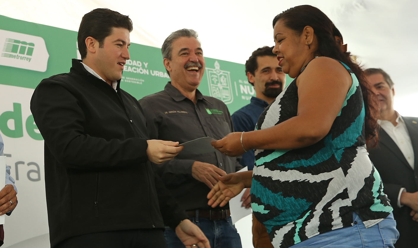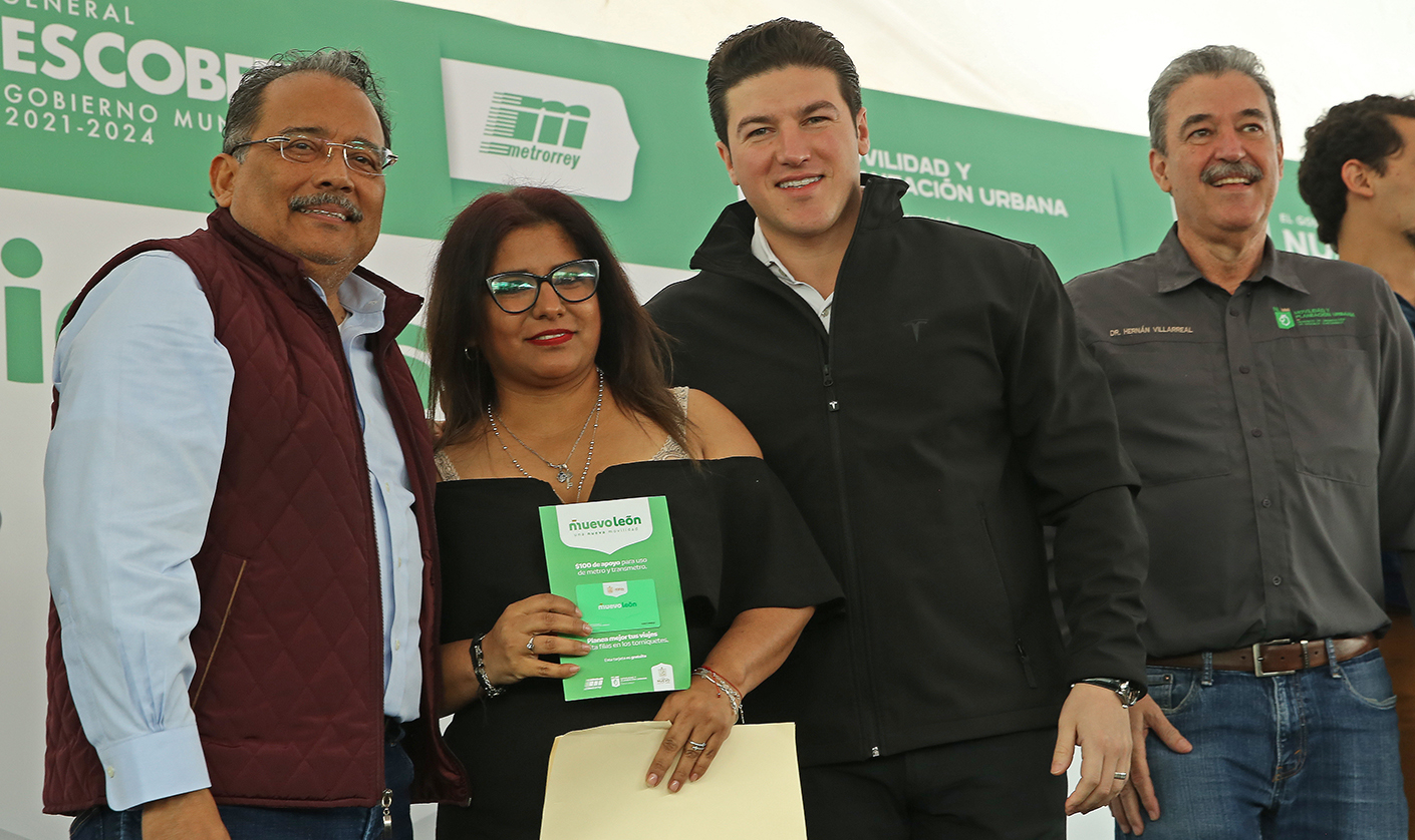 Durante el evento el Gobernador Samuel García entregó 2 mil tarjetas de transporte Me Muevo con 100 pesos de saldo cada una.