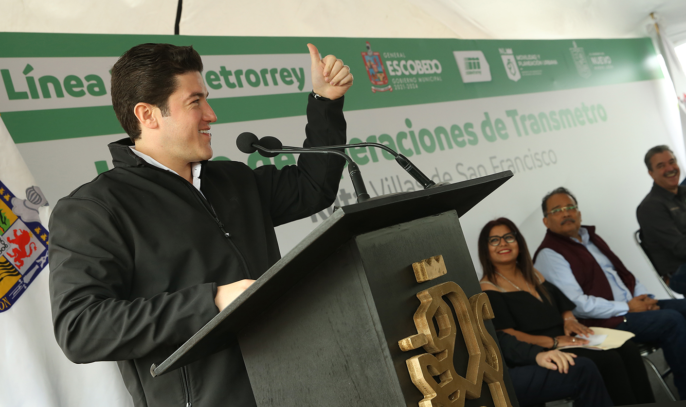 Escobedo, Nuevo León.- Como parte del eje de Transporte Digno del 'MuevoLeón', el Gobernador Samuel Alejandro García Sepúlveda entregó en el municipio de Escobedo 23 nuevas unidades de TransMetro, que recorrerán desde la estación Mitras de la Línea 1 del Metro hasta la colonia Villas de San Francisco.