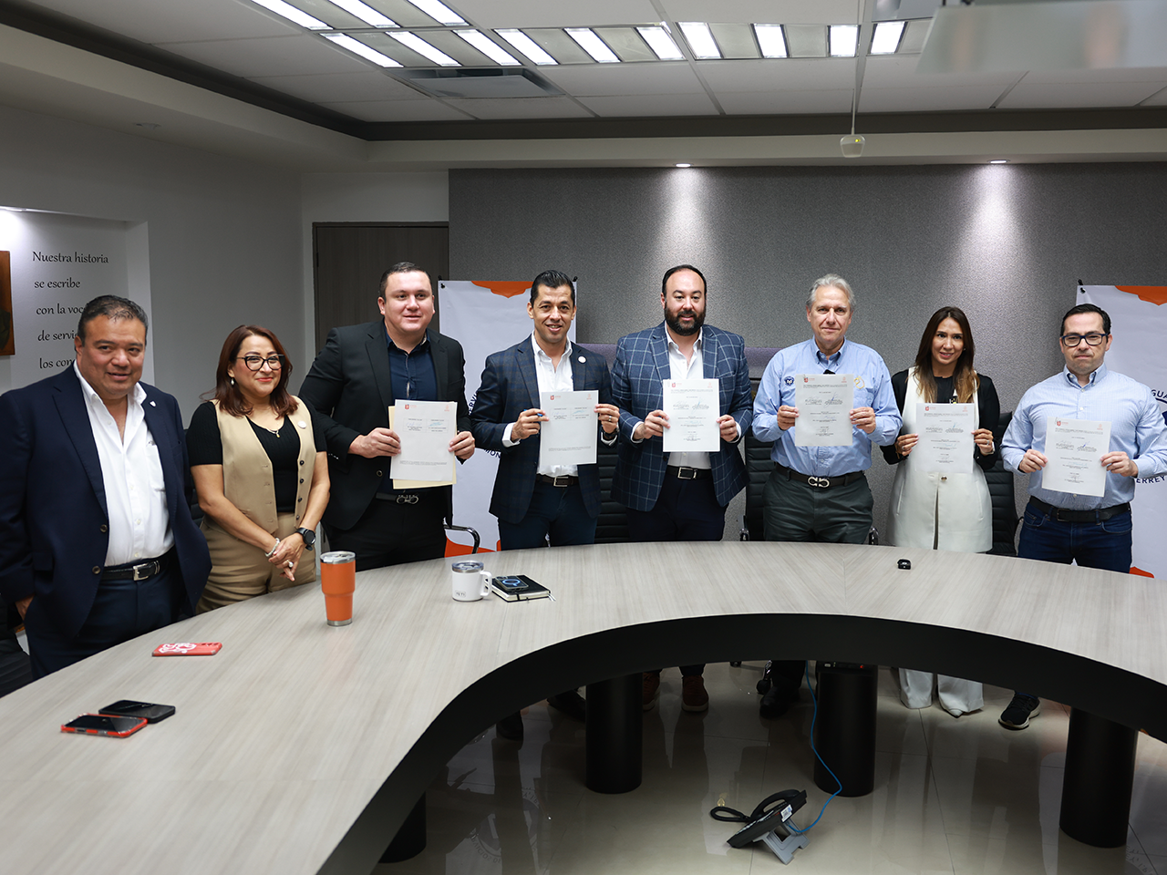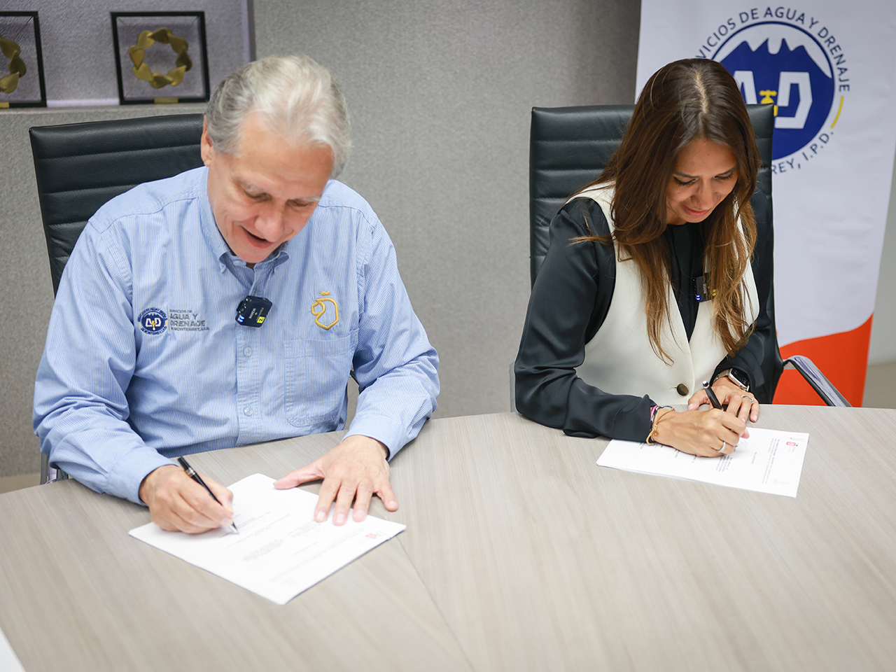 En la firma del convenio estuvieron presentes también Eduardo Ortegón Williamson, director adjunto de Agua y Drenaje de Monterrey; Emmanuel Loo, subsecretario de Economía de Nuevo León; Rodrigo Crespo, director del Fondo Ambiental Metropolitano; Norma Benítez, directora comercial de Agua y Drenaje; Ramiro Meza, director de Operaciones de Agua y Drenaje; y David Olivo, director jurídico de Agua y Drenaje.
