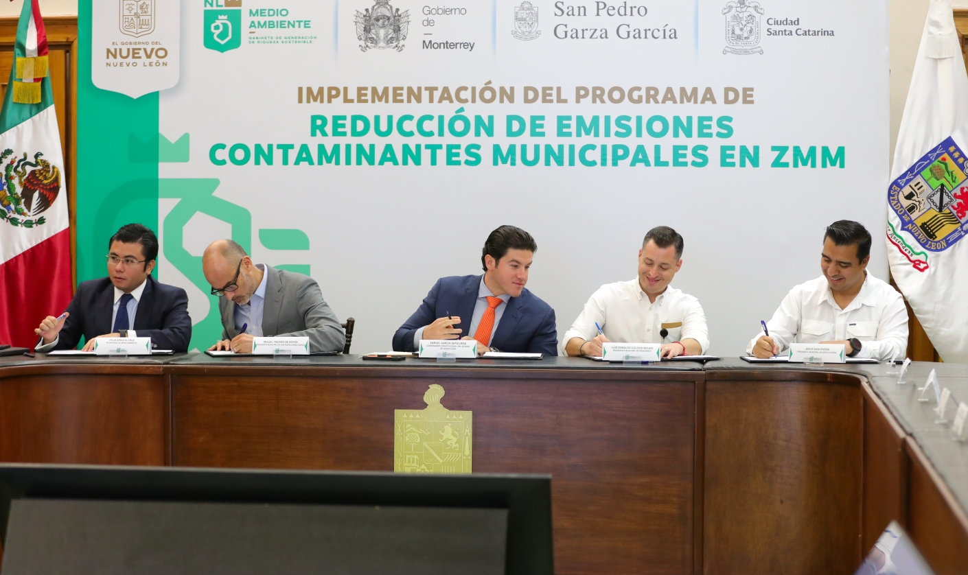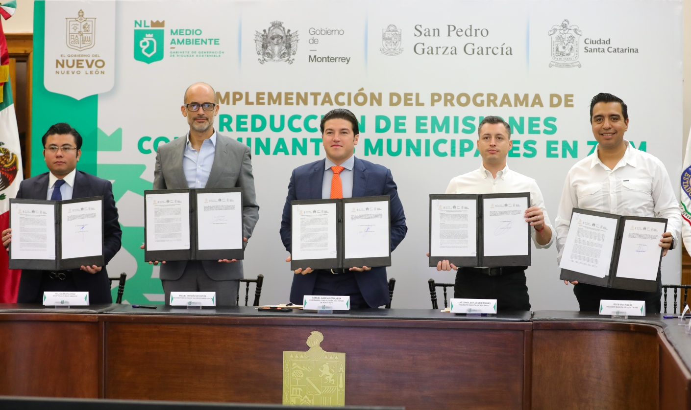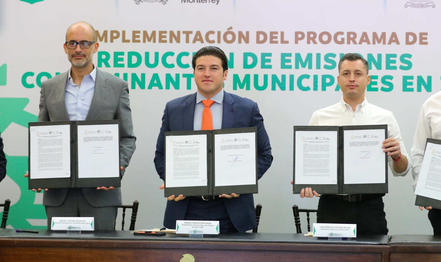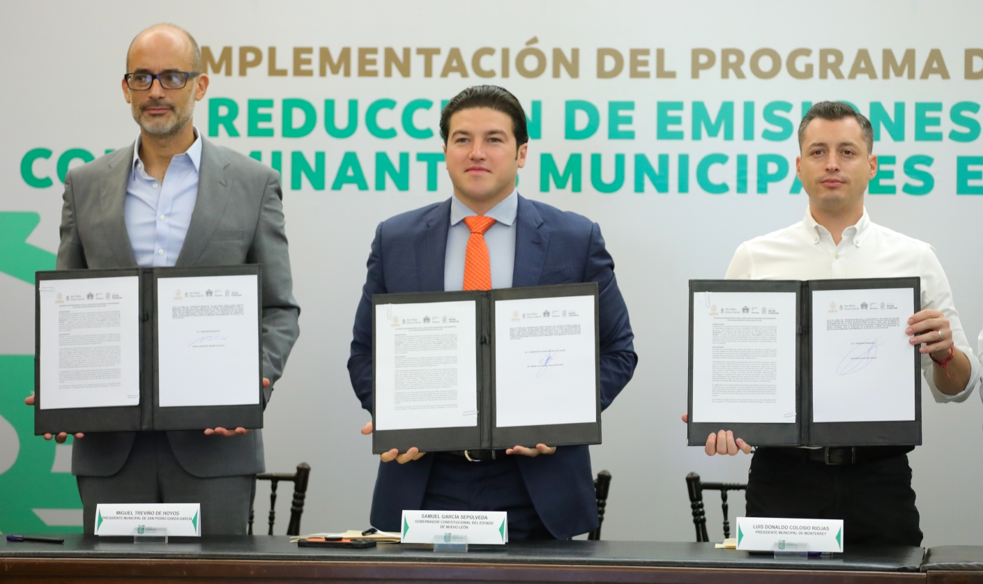 El documento fue suscrito por los alcaldes Luis Donaldo Colosio, de Monterrey; Miguel Treviño, de San Pedro; y Jesús Nava, de Santa Catarina; municipalidades con mayor afectación por la contaminación ambiental.