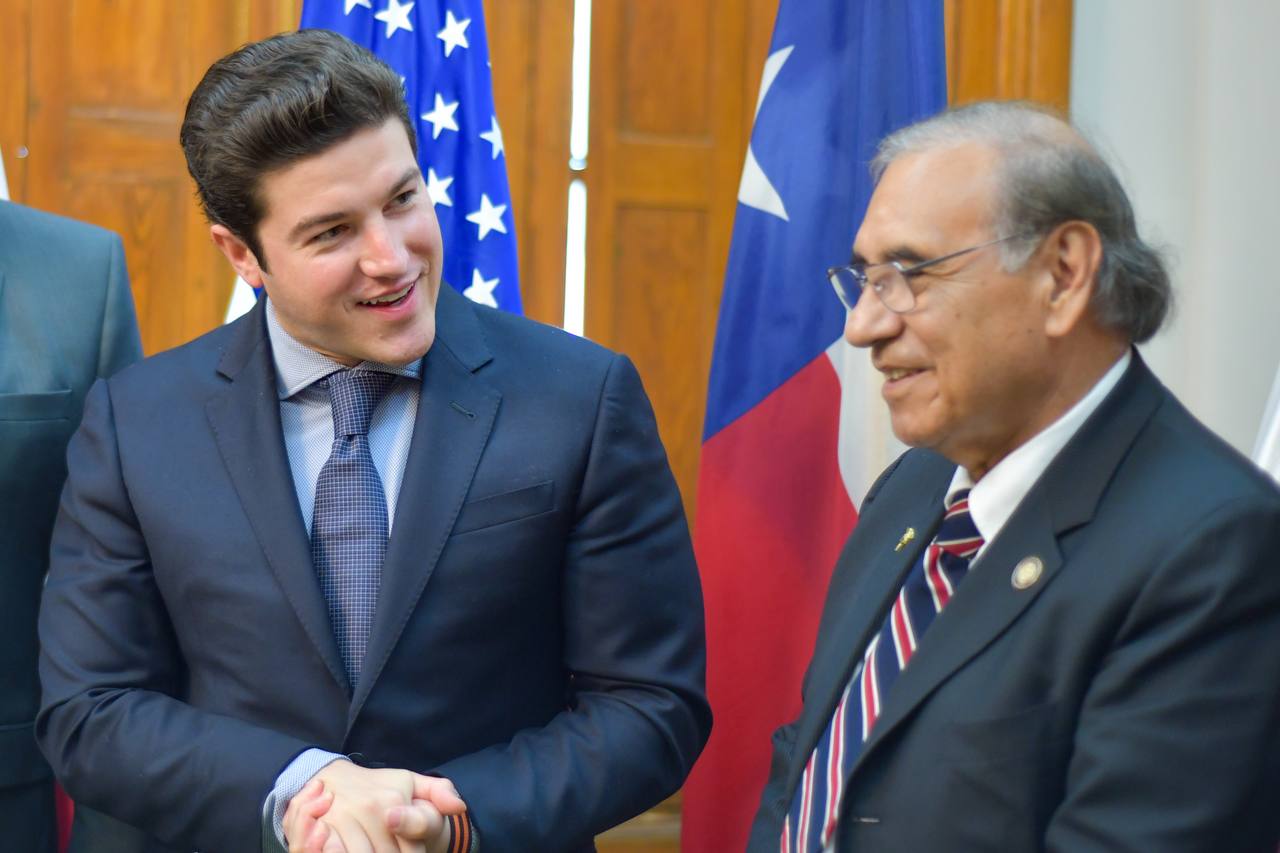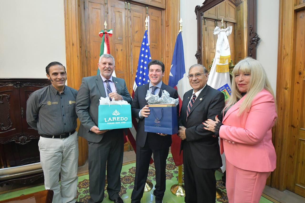 Para reforzar el trabajo en equipo y acelerar proyectos comunes de conectividad transnacional y desarrollo de la frontera común, hoy se reunieron aquí el Gobernador Samuel García y el Alcalde de Laredo, Texas, Víctor Treviño.