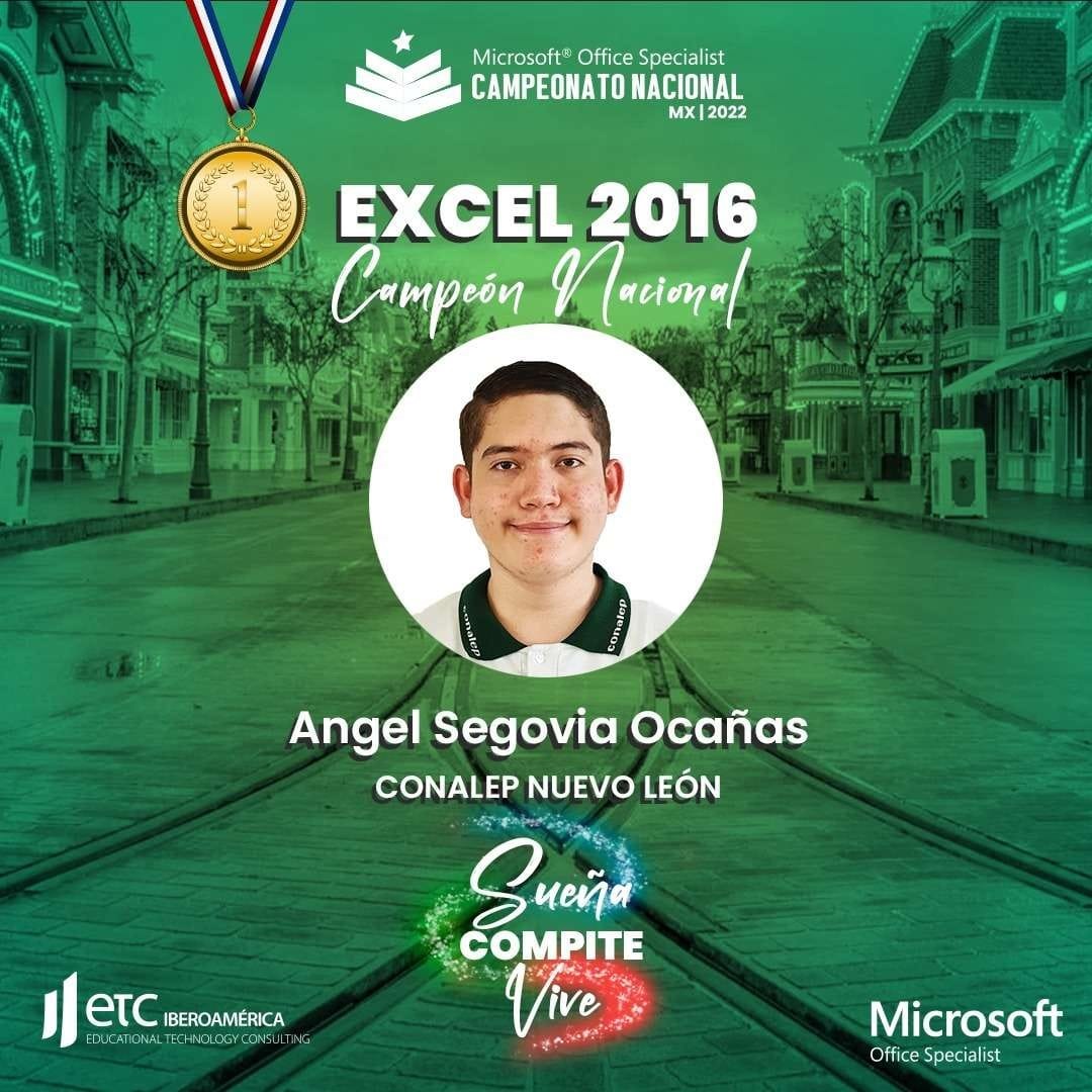 El estudiante del CONALEP Nuevo León, Ángel Segovia Ocañas, representará a México en el World Championship Microsoft Office Specialist 2022, que se efectuará del 24 al 27 de julio, en Anaheim, California, Estados Unidos.